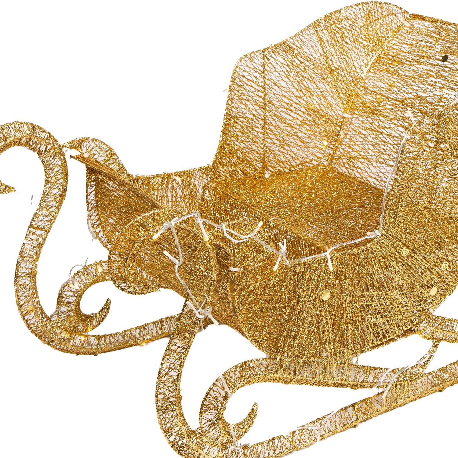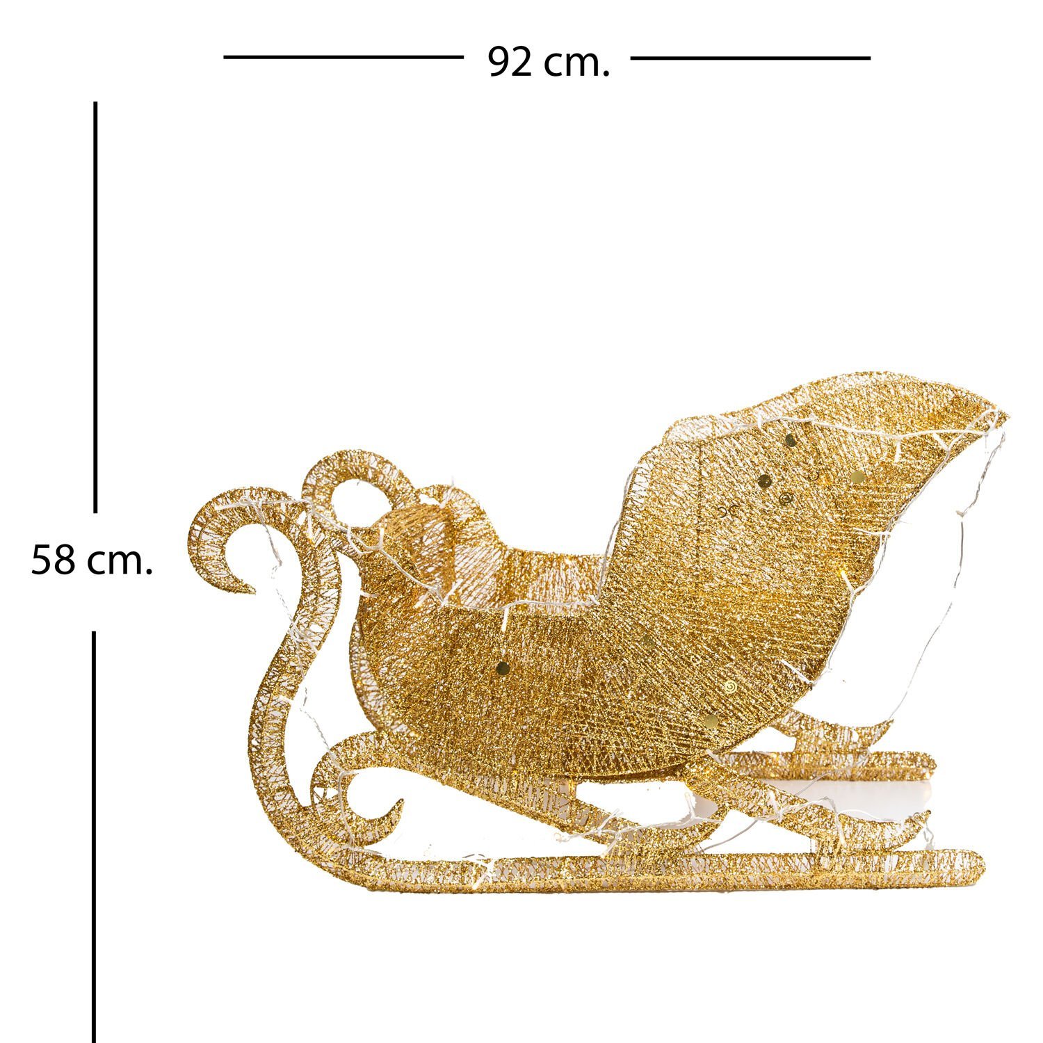 Yılbaşı Süsü, Kızak, Gold - Metal, Işıklı, Simli, 58x92 cm