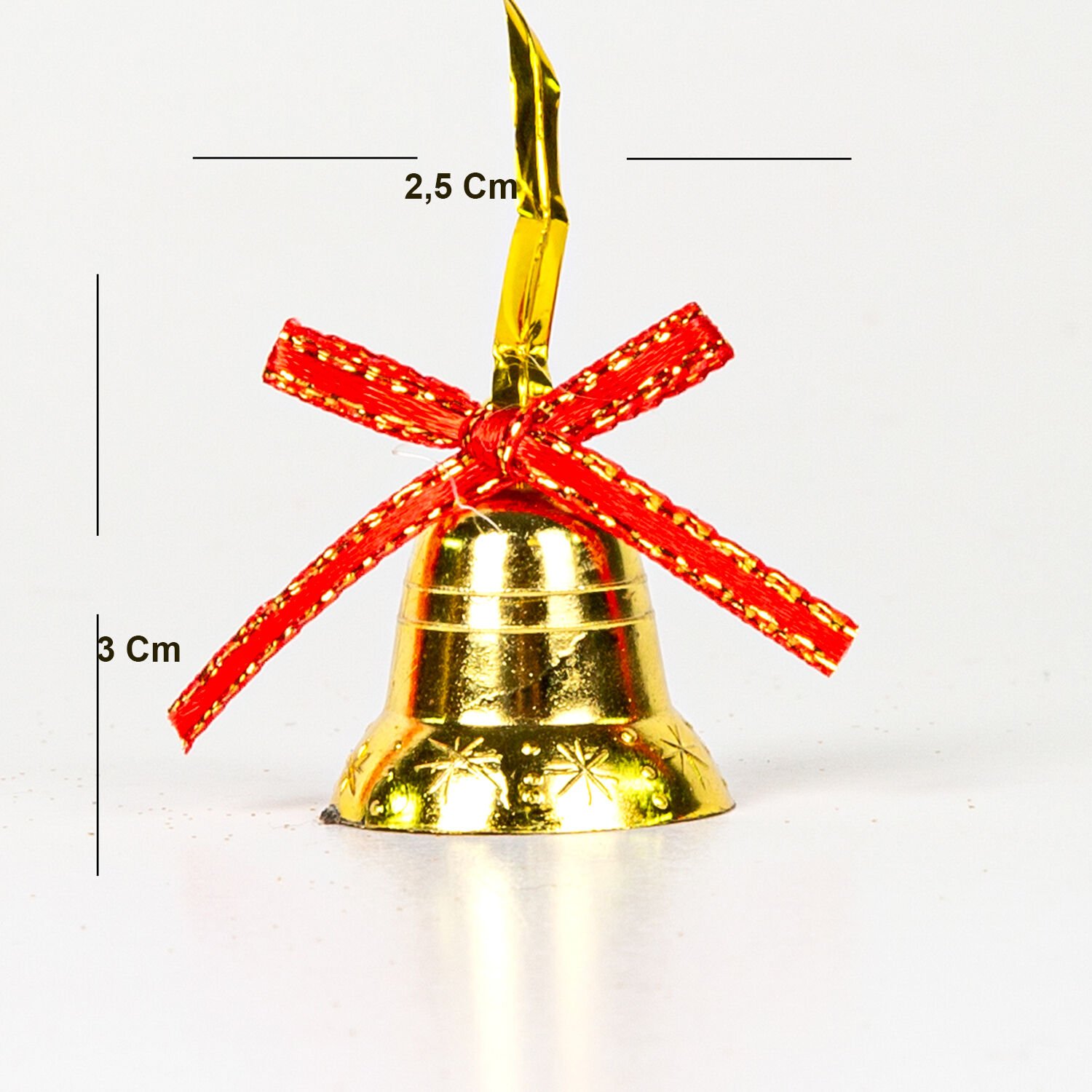Yılbaşı Süsü, Kurdeleli Çan, Dore - 12'li Paket, 2,5x3 cm
