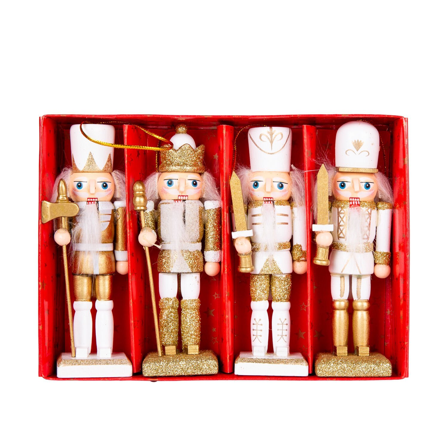 Yılbaşı Süsü, Kurşun Adam, Fındıkkıran, Gold-Beyaz - 4'lü Paket, 13 cm