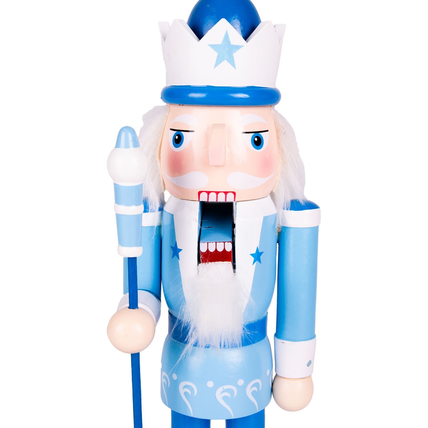 Yılbaşı Süsü, Kurşun Asker Fındıkkıran, Beyaz Taçlı, Mavi - 37 cm