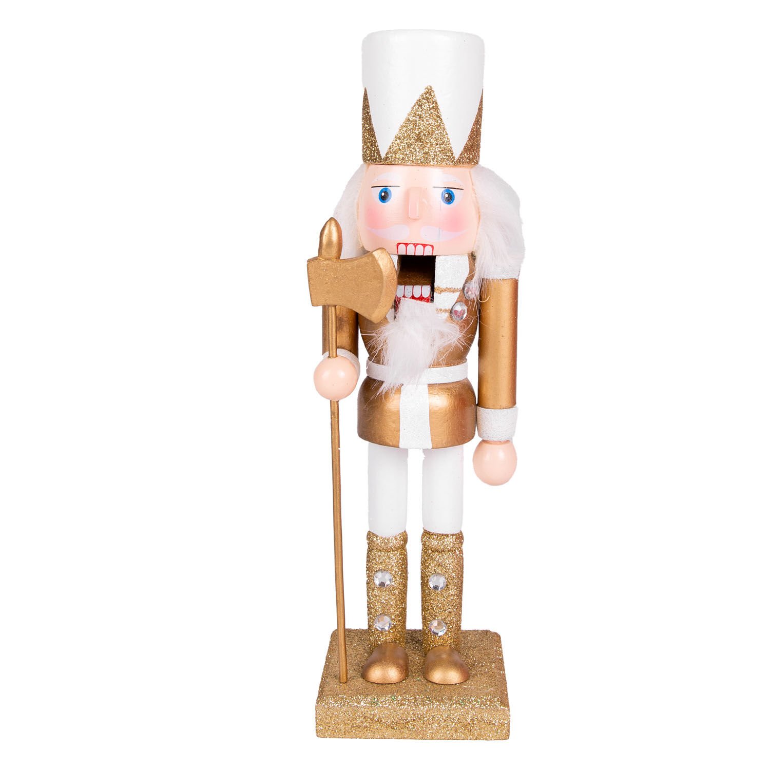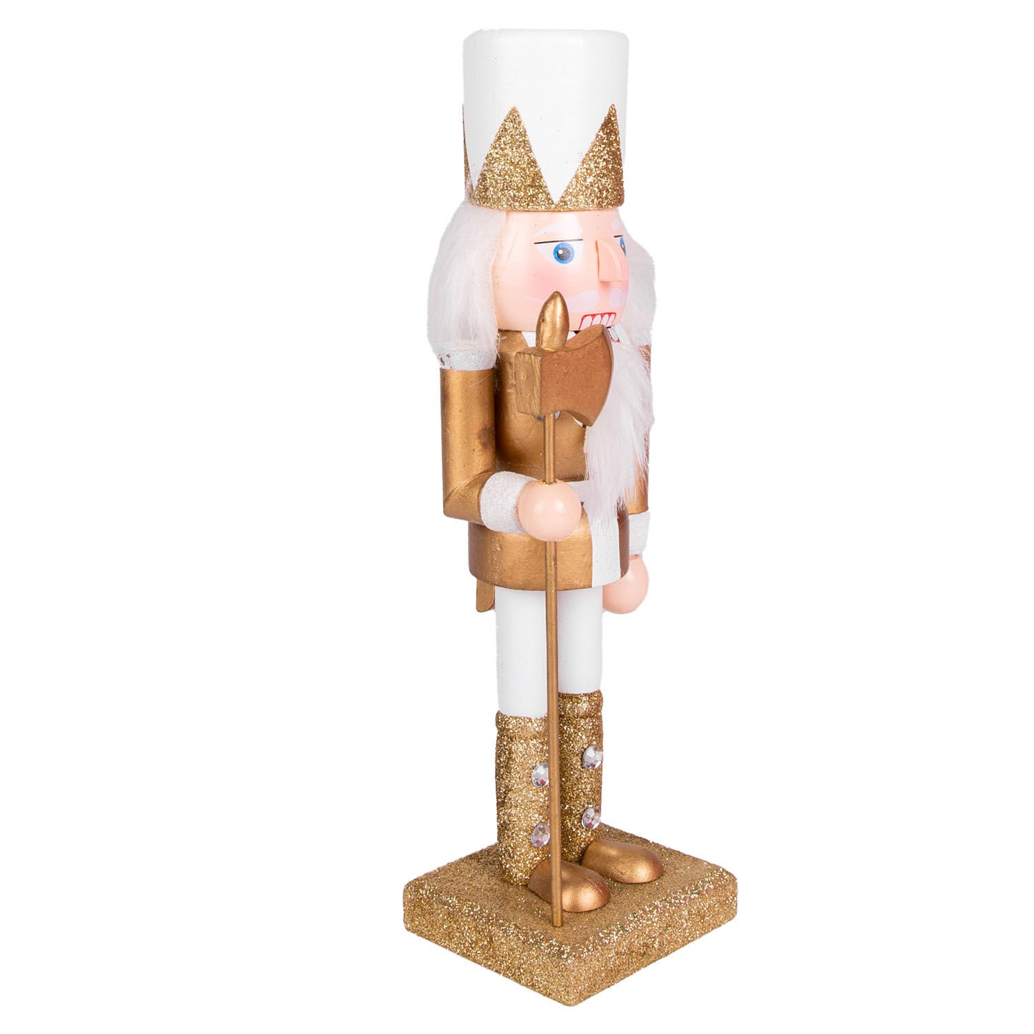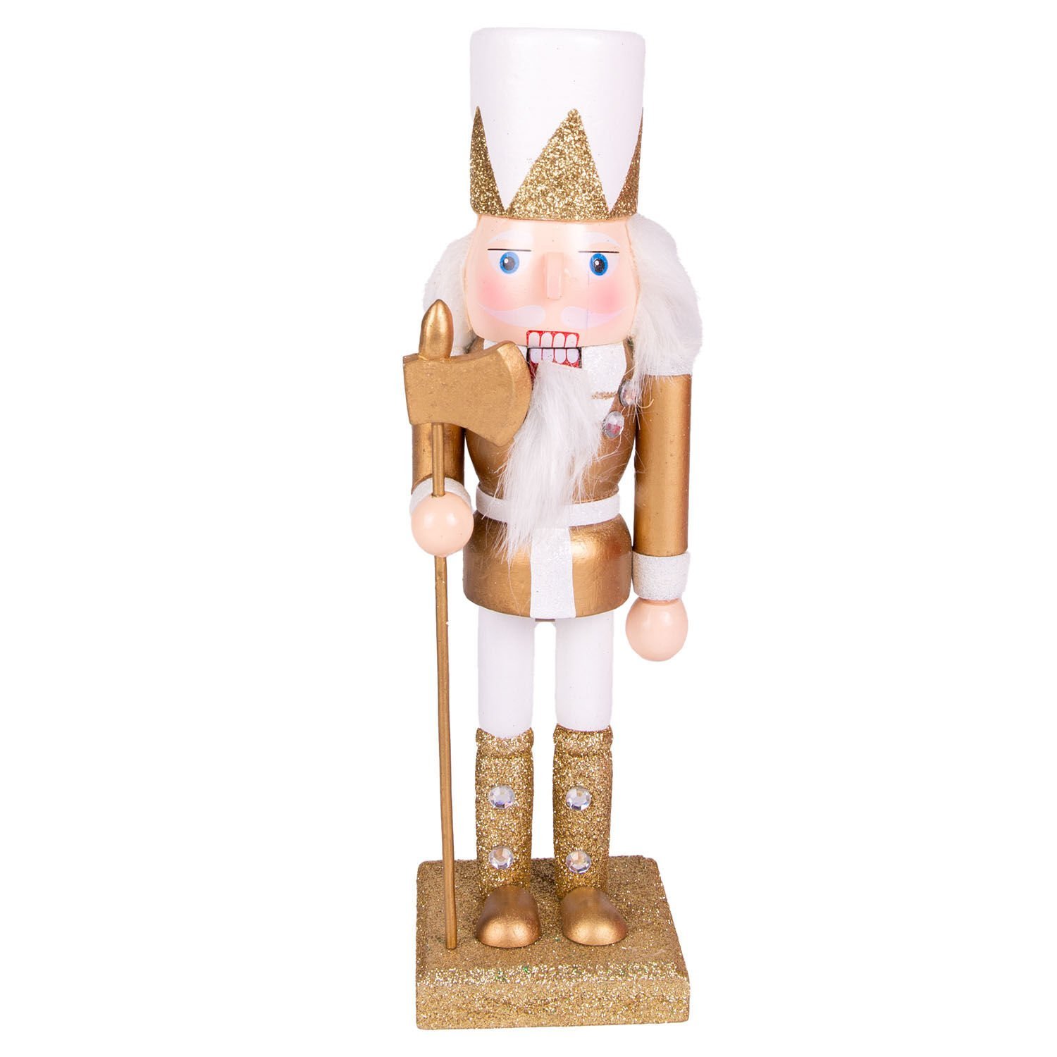Yılbaşı Süsü Kurşun Asker Fındıkkıran Elmas Taş Detaylı Baltalı Simli Gold-Beyaz 25 Cm.