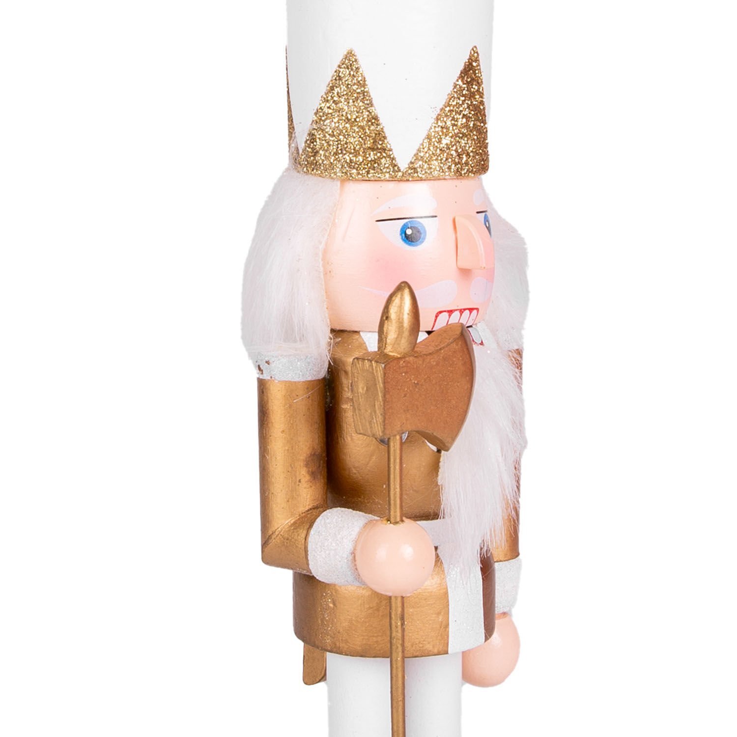 Yılbaşı Süsü, Kurşun Asker Fındıkkıran, Elmas Taş Detaylı, Baltalı, Simli, Gold-Beyaz - 25 cm