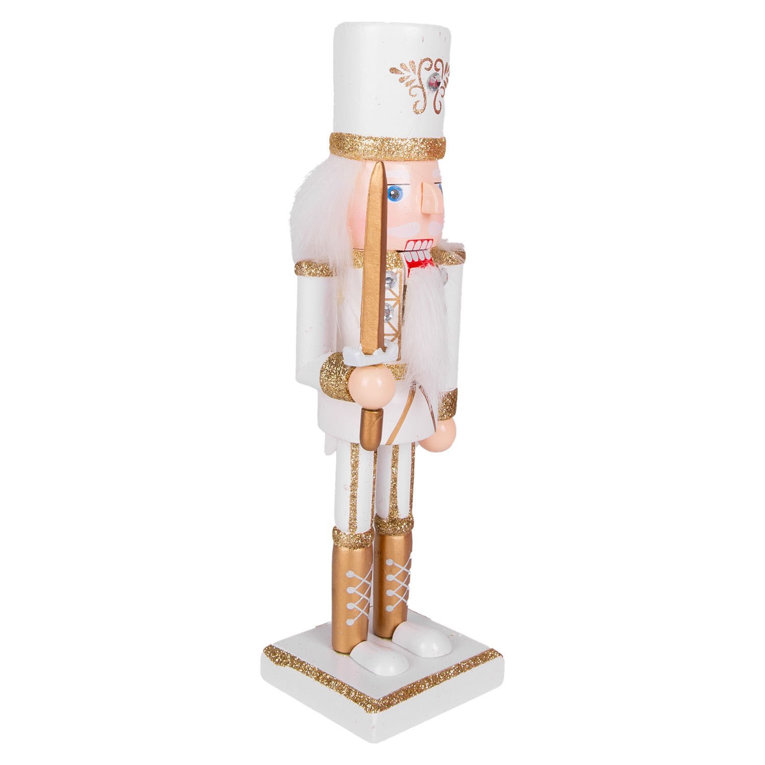 Yılbaşı Süsü, Kurşun Asker Fındıkkıran, Elmas Taş Detaylı, Kılıçlı, Simli, Gold-Beyaz - 25 cm