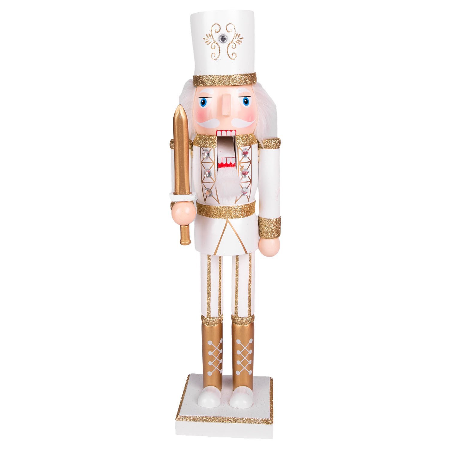 Yılbaşı Süsü Kurşun Asker Fındıkkıran Simli Beyaz Şapkalı Kılıçlı Gold-Beyaz 38 Cm.