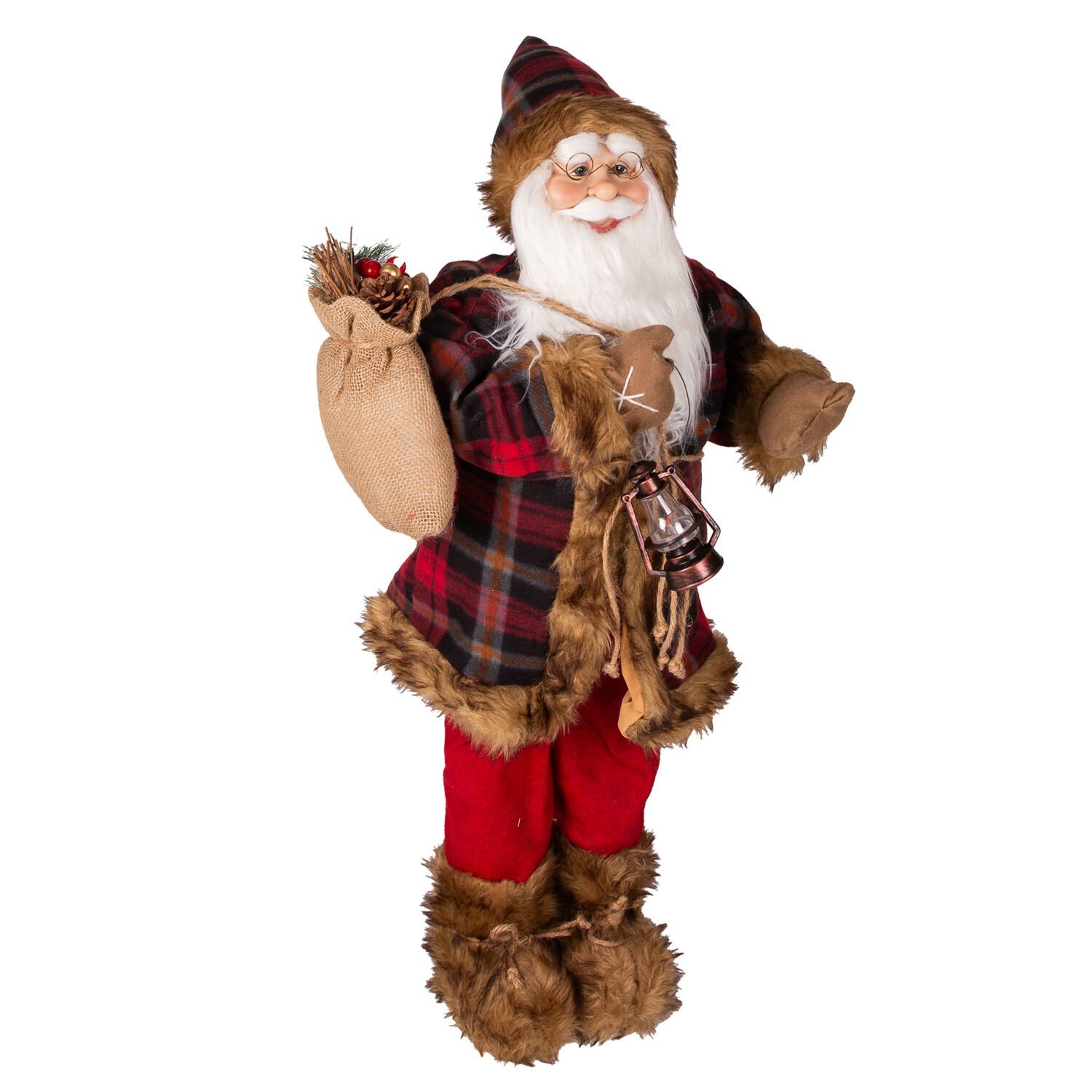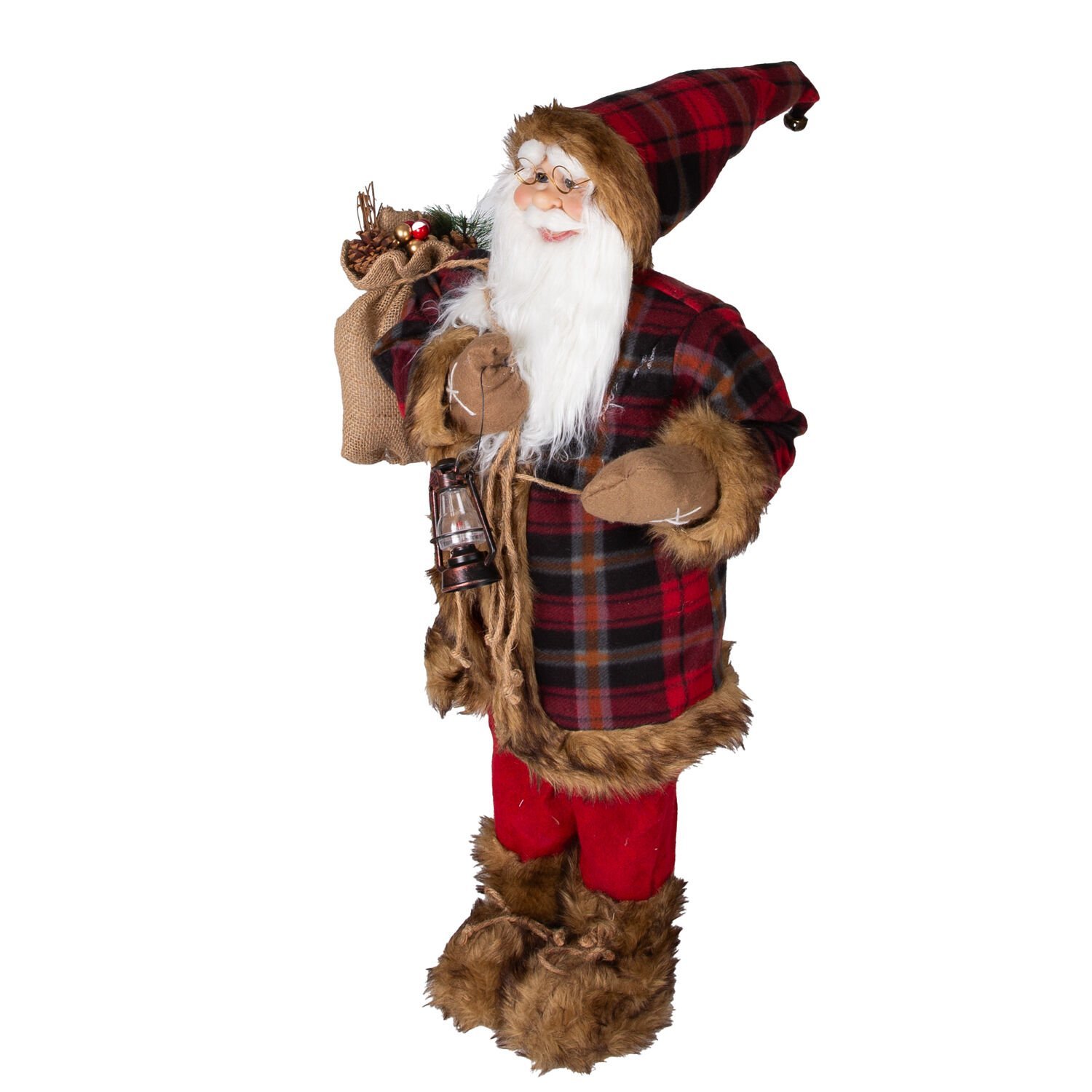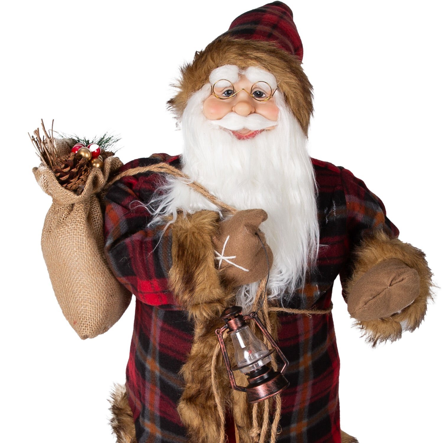 Yılbaşı Noel Baba Ekose Kumaşlı Figür (90 cm): Kırmızı-Siyah Ekoseyle Modern Yılbaşı Temalarına Göz Kamaştırıcı Uyum