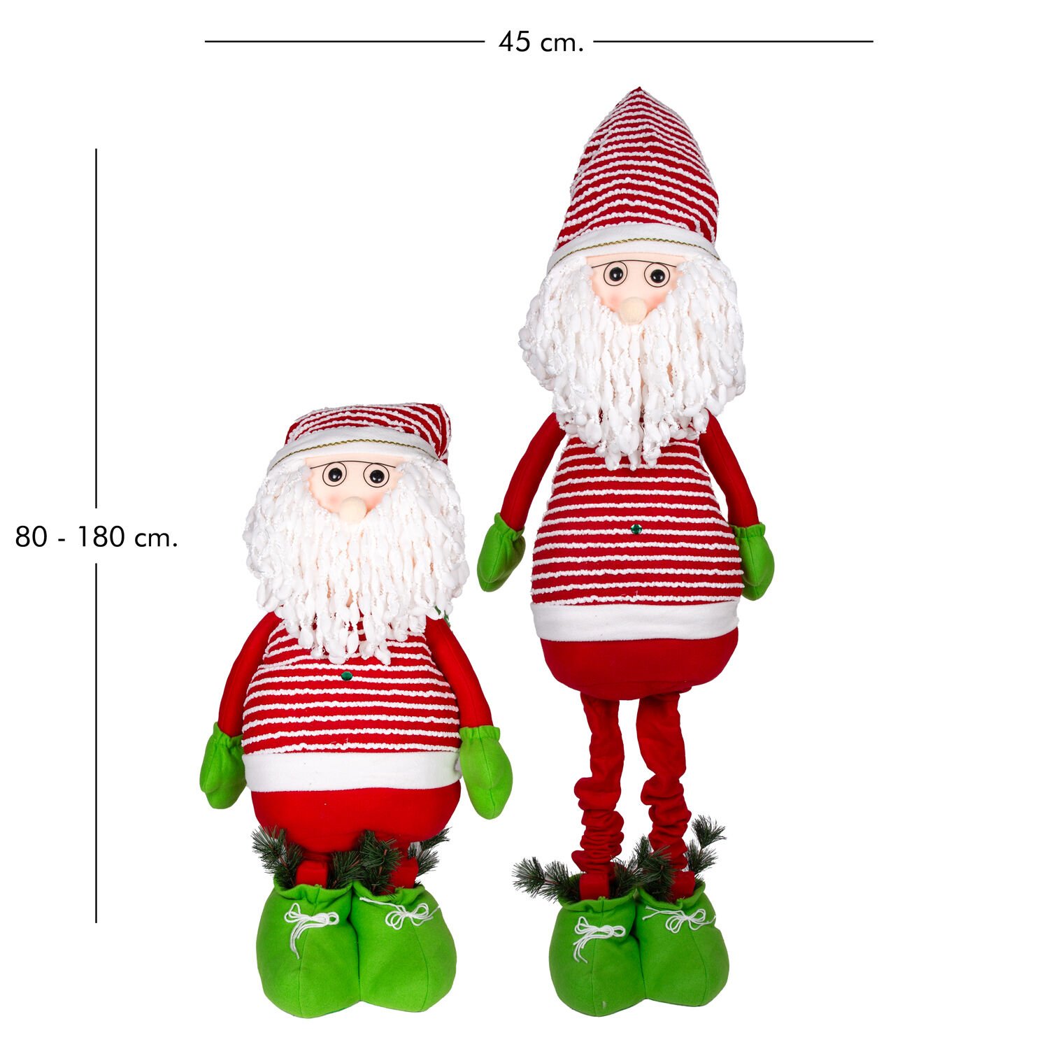 Yılbaşı Süsü, Noel Baba, Kırmızı-Yeşil - Uzayan Ayaklı, Çizgili, İp Sakallı, Çam Süsü Detaylı, 180 cm