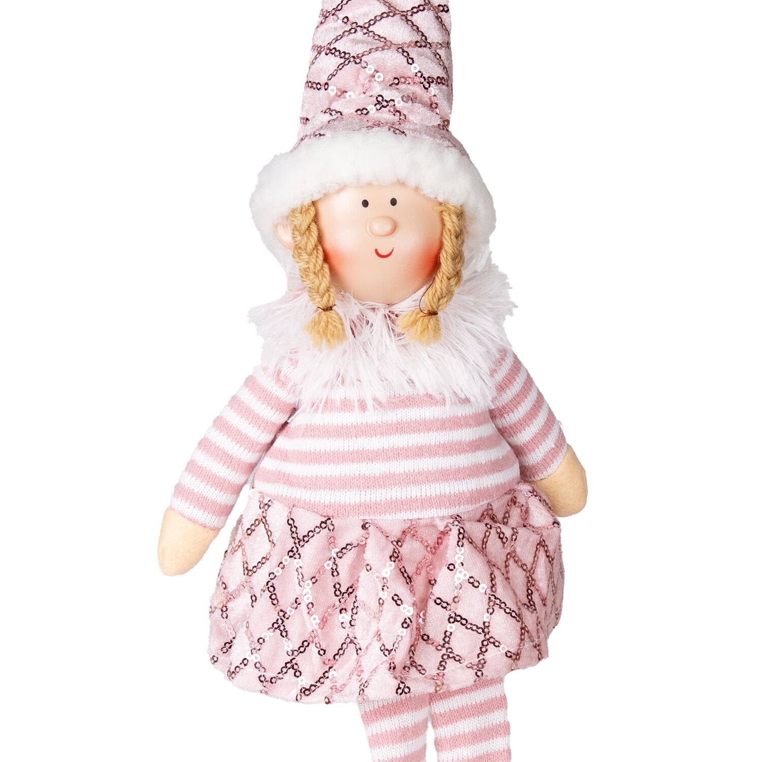 Yılbaşı Oturan Kanatlı Peri Figürü (53 cm, Şeritli Kazak/Pembe Etek): Farklı ve Eğlenceli Tasarımıyla Neşeli Bir Kış Havası