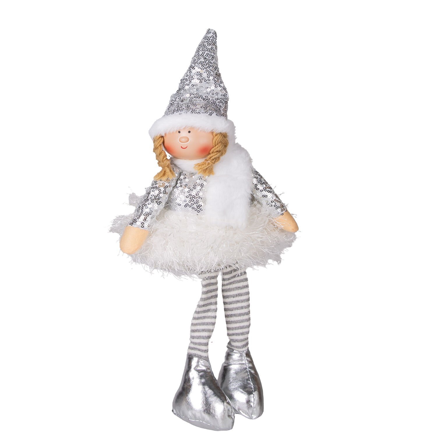 Yılbaşı Oturan Peri Figürü (53 cm, Gümüş): Baştan Ayağa Gümüş Işıltısıyla Modern ve Cool Bir Yılbaşı Teması