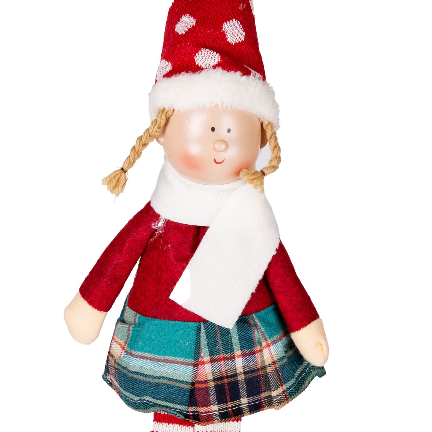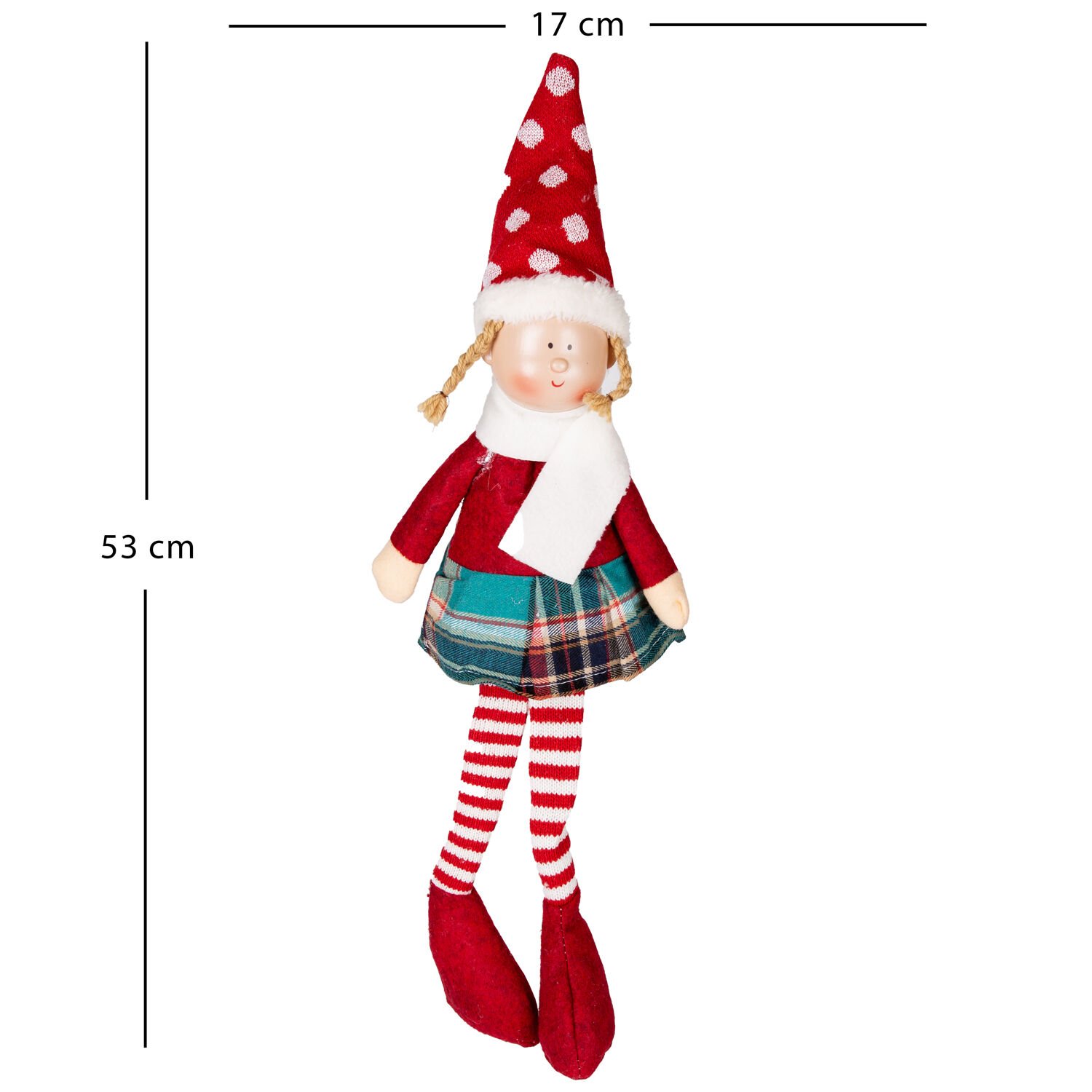Yılbaşı Oturan Peri Figürü (53 cm, Kırmızı-Beyaz): Klasik Kırmızı-Beyaz Kıyafetiyle Yılbaşı Neşesini Evinize Getiren Tatlı Dekor