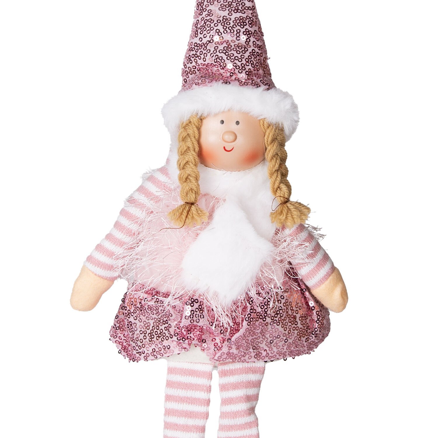 Yılbaşı Oturan Peri Figürü (53 cm, Pembe): Tamamen Pembe Giysileriyle Tatlı ve Romantik Bir Yılbaşı Dekorasyonu