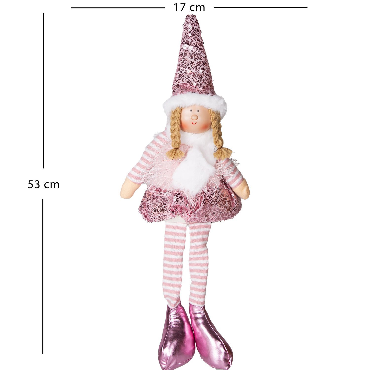 Bu ideal boyutlu figür, özellikle şömine şöminesinin kenarında, kitaplık veya raf kenarında bacakları aşağı sarkacak şekilde veya geniş bir konsolun üstünde asil bir vurgu olarak kullanılmalıdır. Yanına beyaz, gümüş veya açık gri tonlarında toplar ekleyerek modern-romantik bir yılbaşı köşesi oluşturabilirsiniz. Figürün duruşu, fotoğraflarınız için harika bir fon oluşturur. Pembe tonları, huzurlu ve çağdaş bir kış atmosferi yaratır. Sizin için tasarlanan detayları şimdi deneyimleyin.