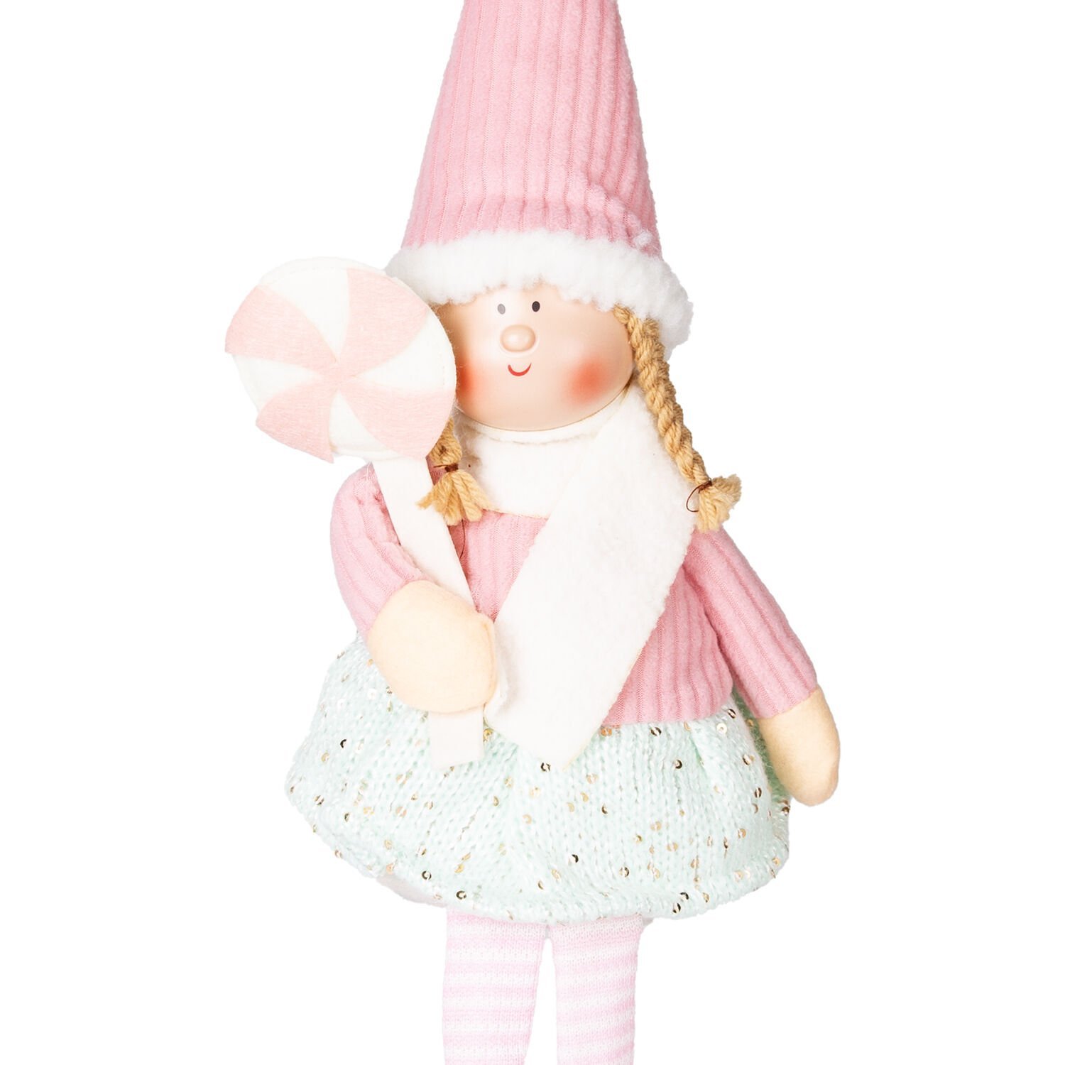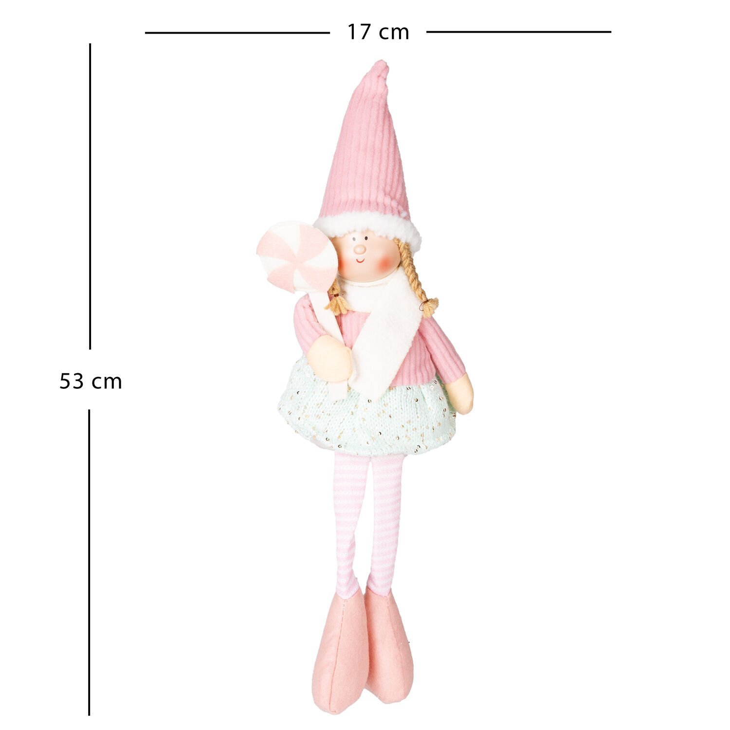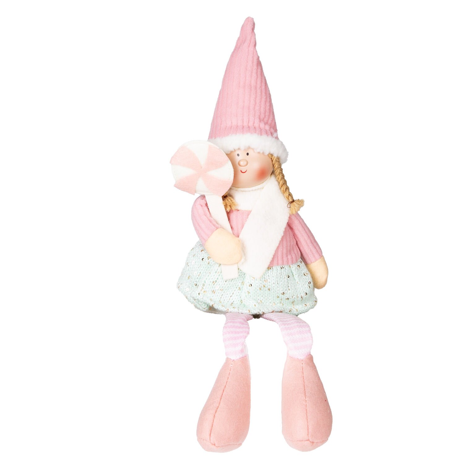 Yılbaşı Oturan Peri Figürü (53 cm, Pembe-Beyaz/Şeker Tutan): Tatlılığıyla İç Isıtan ve Neşe Saçan Sevimli Dekor