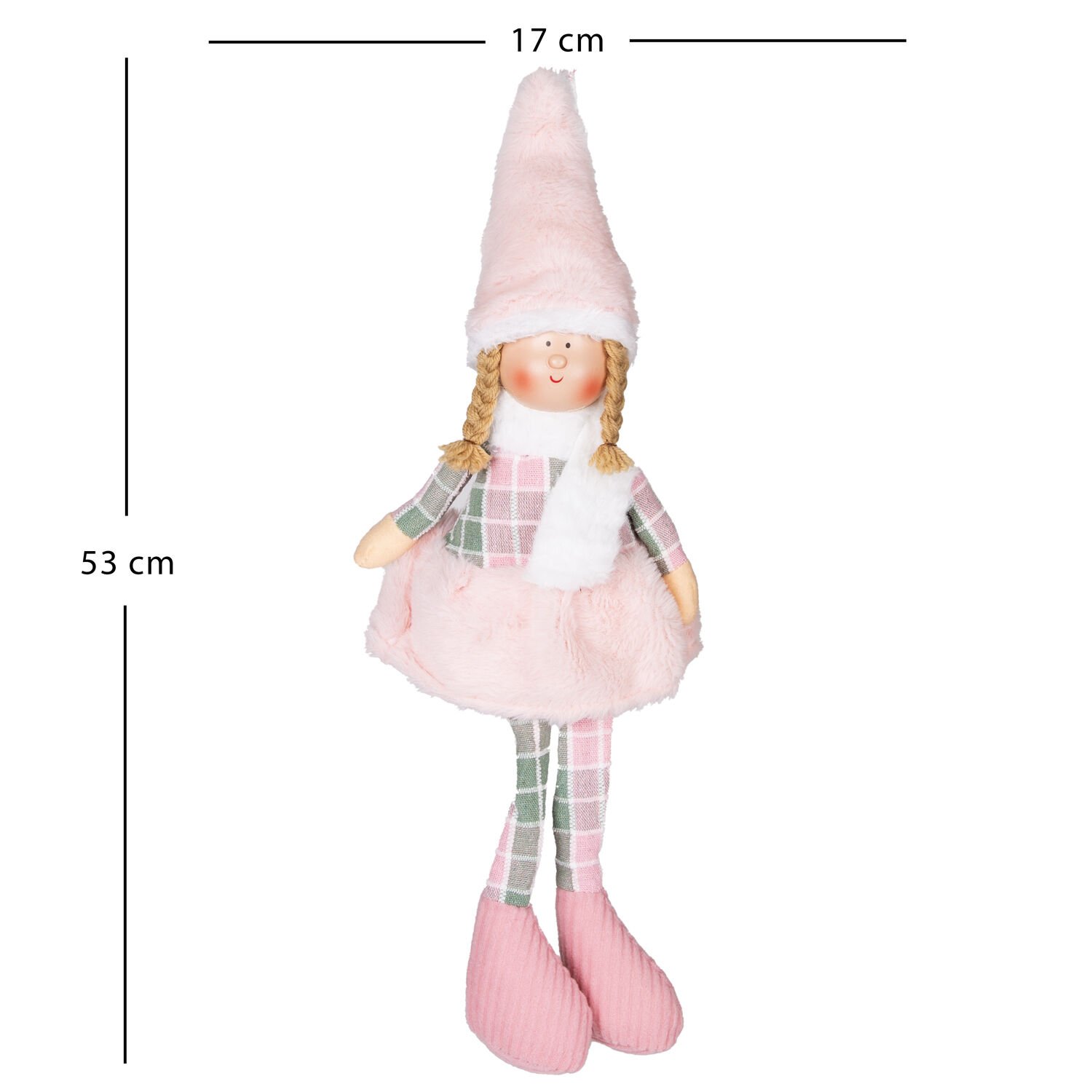 Bu ideal boyutlu figür, özellikle şömine şöminesinin kenarında, kitaplık veya raf kenarında bacakları aşağı sarkacak şekilde veya geniş bir konsolun üstünde asil bir vurgu olarak kullanılmalıdır. Yanına gümüş, beyaz veya açık pembe tonlarında toplar ekleyerek modern-romantik bir yılbaşı köşesi oluşturabilirsiniz. Figürün duruşu, fotoğraflarınız için harika bir fon oluşturur. Gri ve pembe tonları, huzurlu ve çağdaş bir kış atmosferi yaratır. Sizin için tasarlanan detayları şimdi deneyimleyin.