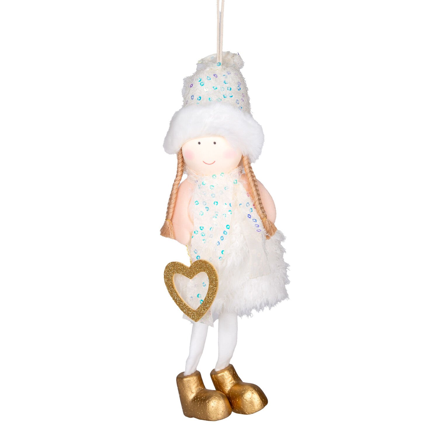 Yılbaşı Süsü, Peri Figürlü, Gold-Beyaz - 12x40 cm