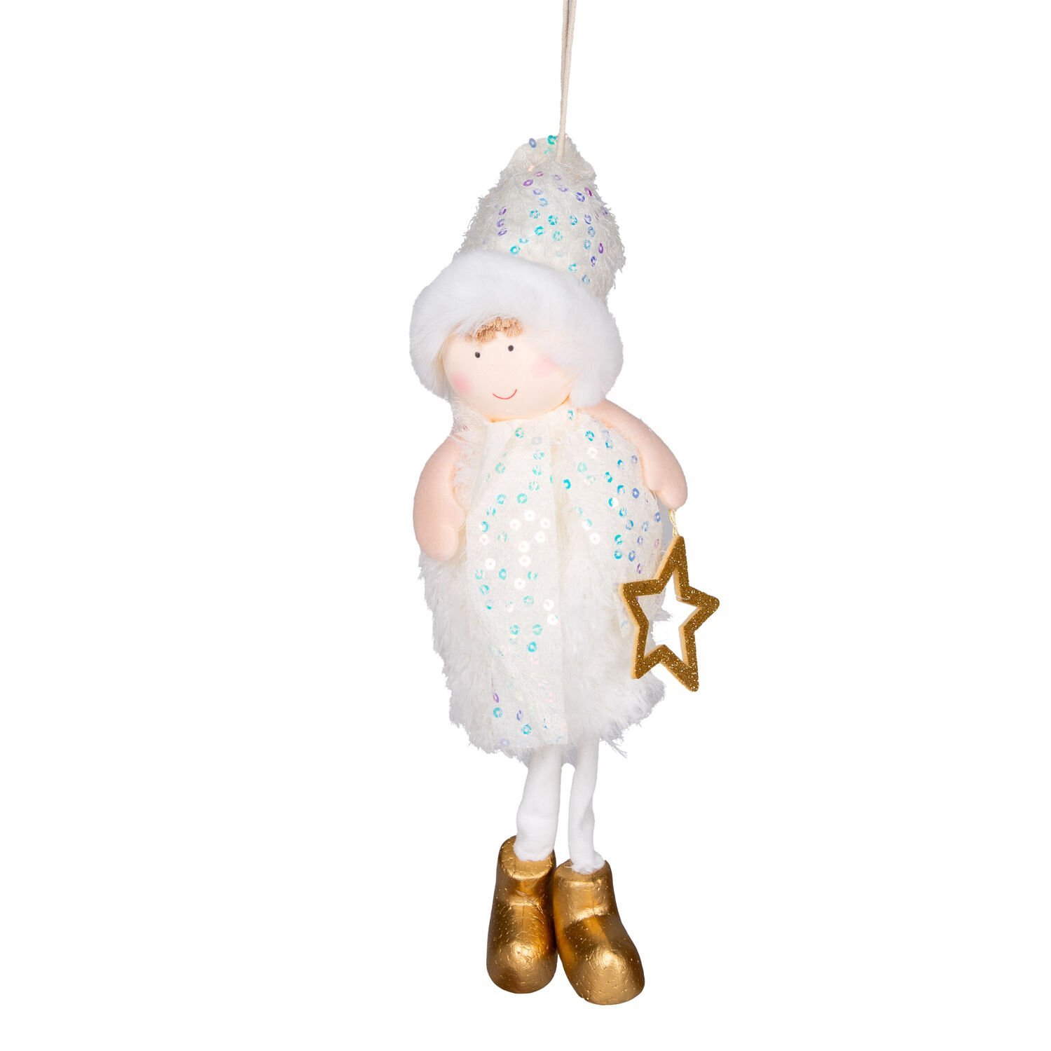 Yılbaşı Süsü, Peri Figürlü, Gold-Beyaz - 12x40 cm