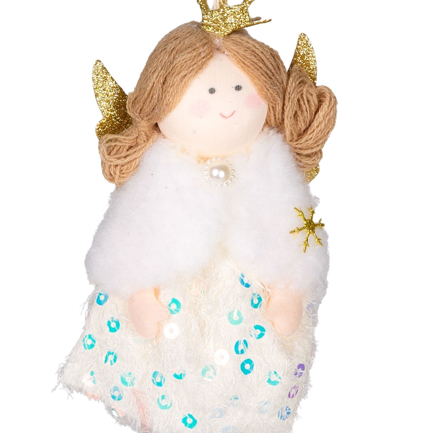 Yılbaşı Süsü, Peri Figürlü, Gold-Beyaz - 9x19 cm