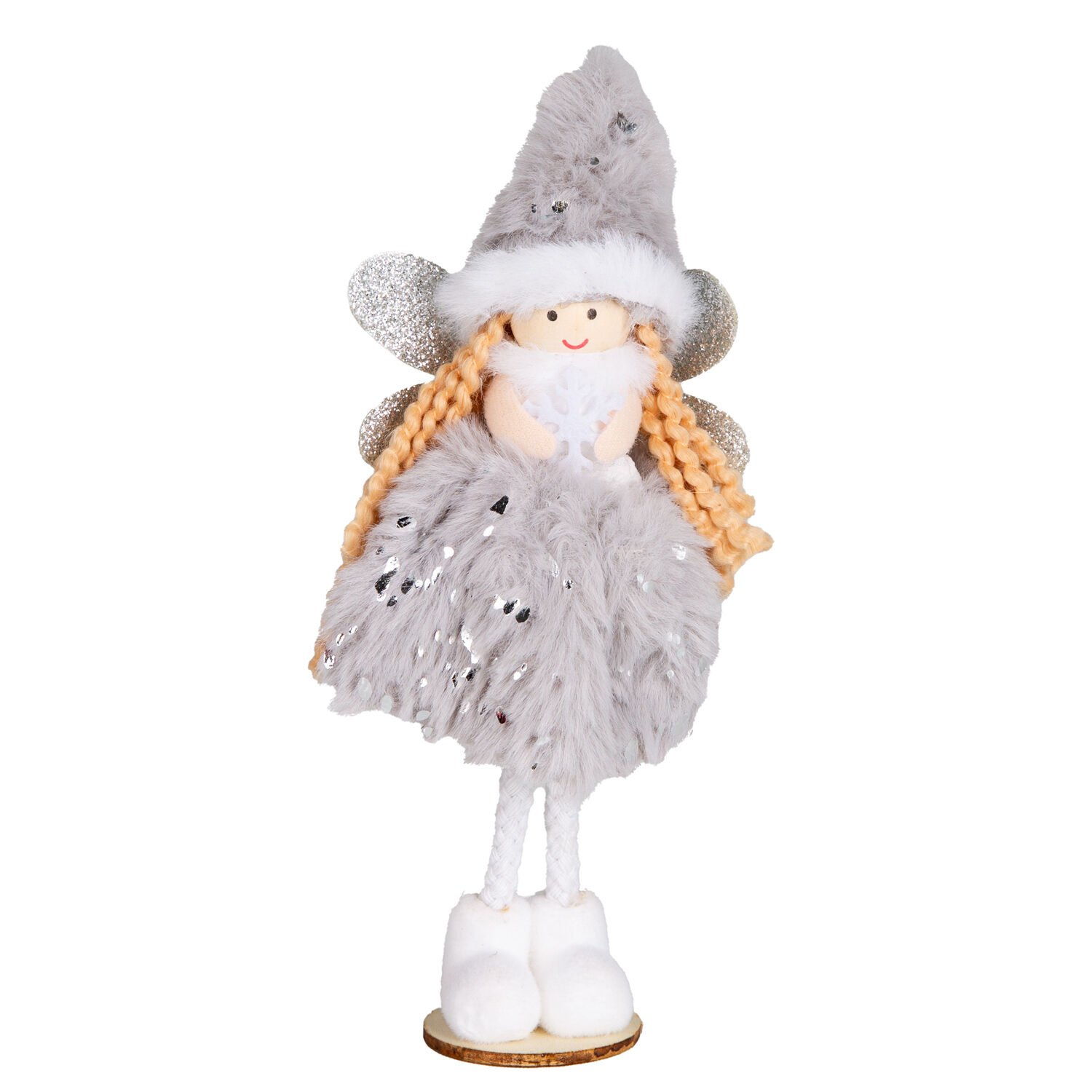 - Malzeme: Yüksek Kaliteli Tekstil (Elbise), Poliresin (Gövde/Yüz), Ahşap (Taban), Simli Kumaş (Kanatlar), Payet, Keçe (Kar Tanesi).