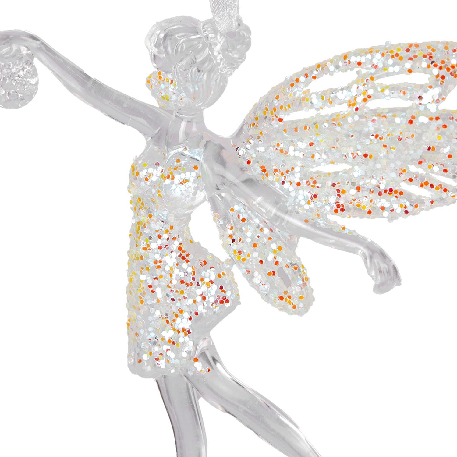 Yılbaşı Süsü, Peri, Şeffaf - Asmalı, Akrilik Cam, Simli Kanatlı, Simli Elbiseli, Top Tutan, 11,5x12 cm