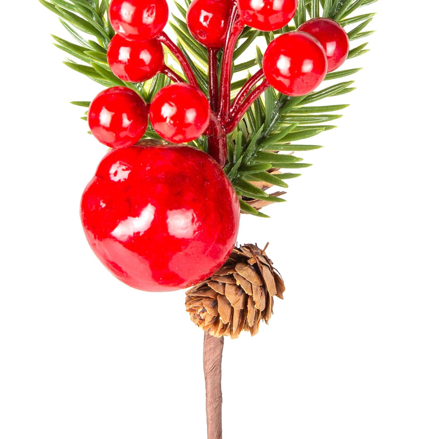 Yılbaşı Süsü, Pike Berry, Kırmızı-Yeşil - Elmalı, Kozalaklı, 22 cm