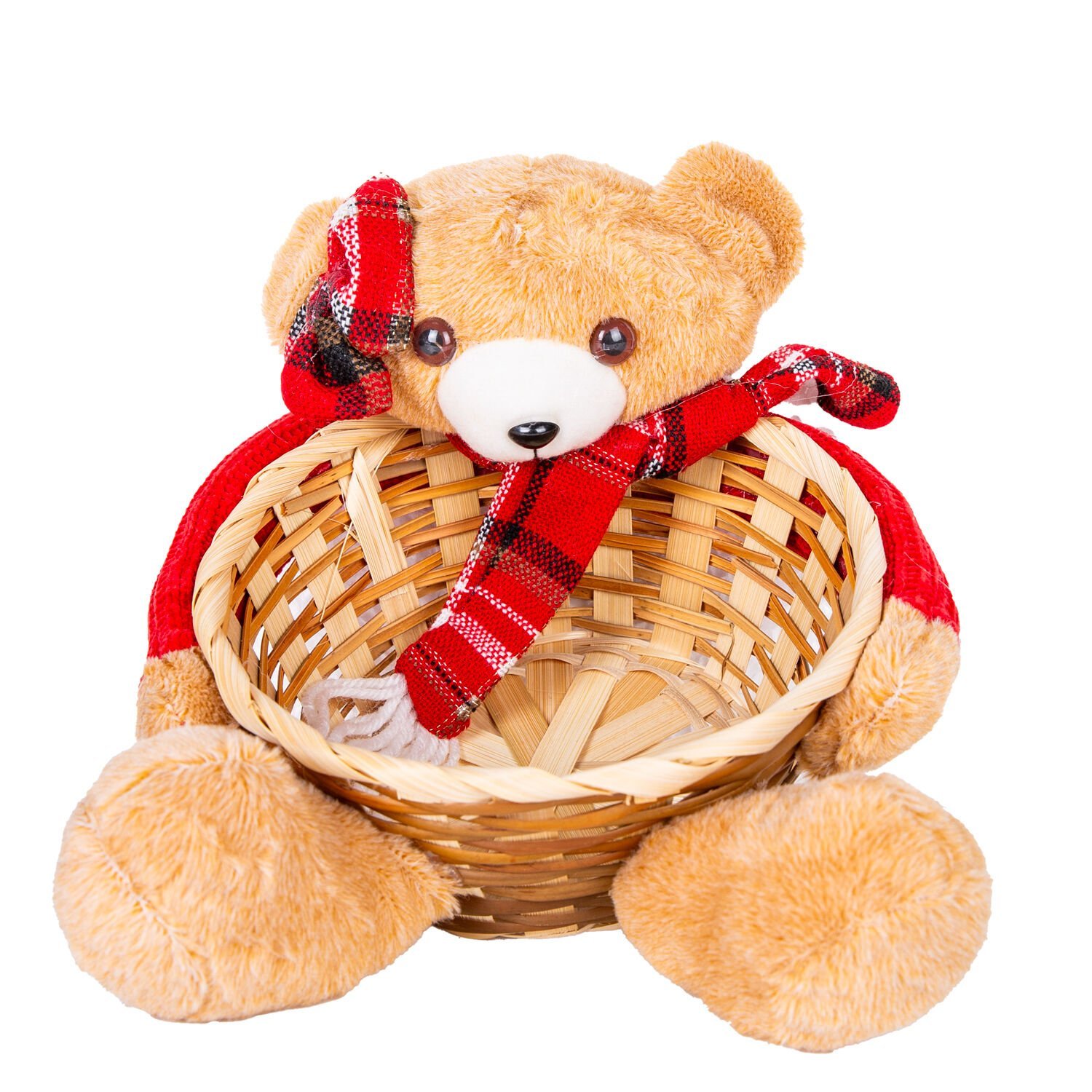 Yılbaşı Süsü, Sepet, Ayıcıklı, Kahverengi - 21x14 cm