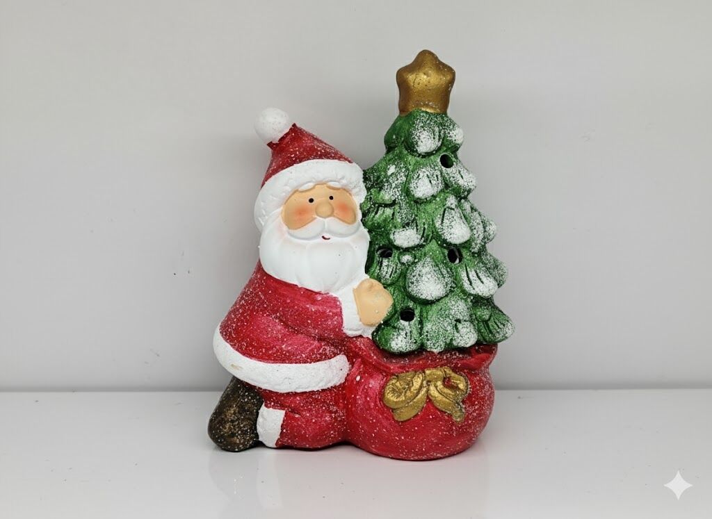 Yılbaşı Süsü, Seramik Ağaç ve Noel Baba, Kırmızı - Işıklı, Masa Dekoru