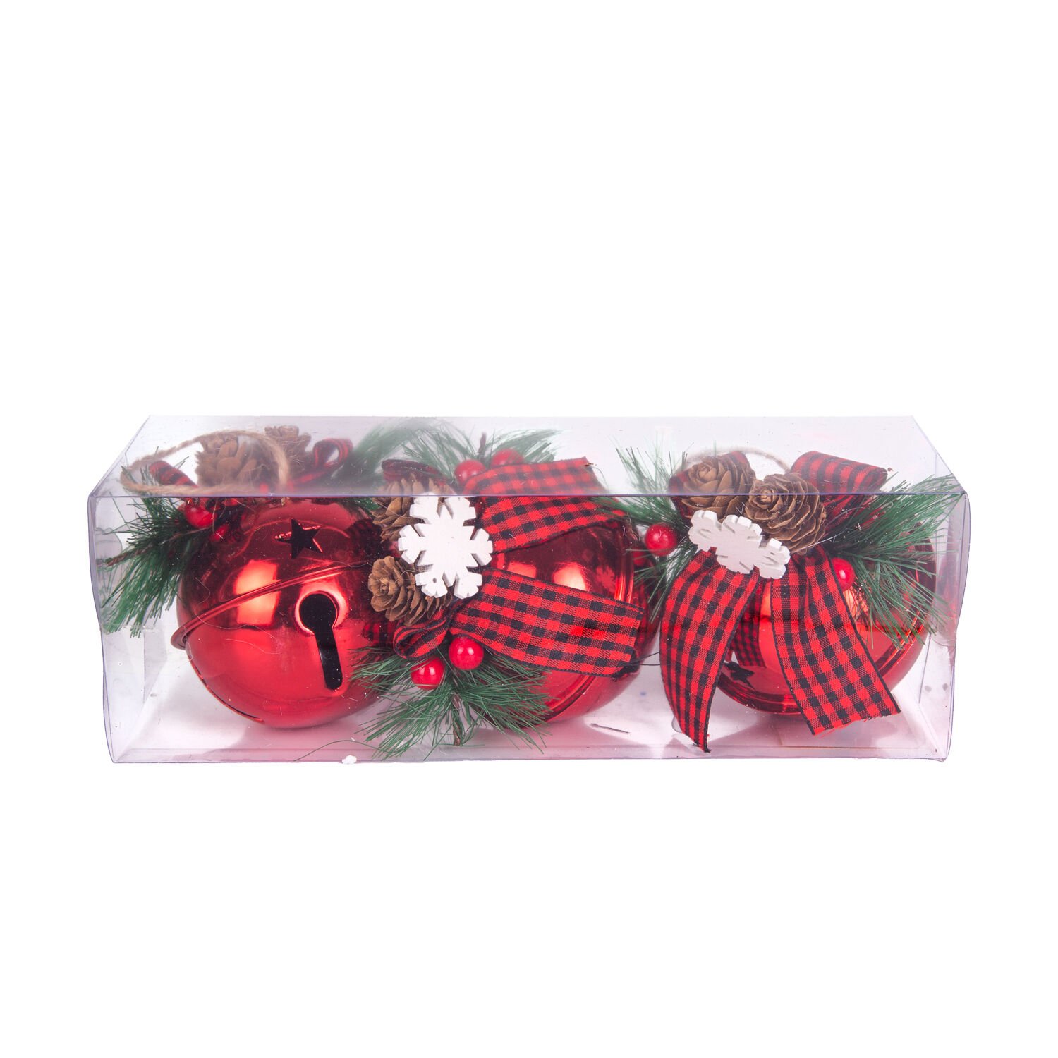 Yılbaşı Süsü, Yılbaşı Topu, Çıngıraklı, Kırmızı - 3'lü Set, 8x9 cm