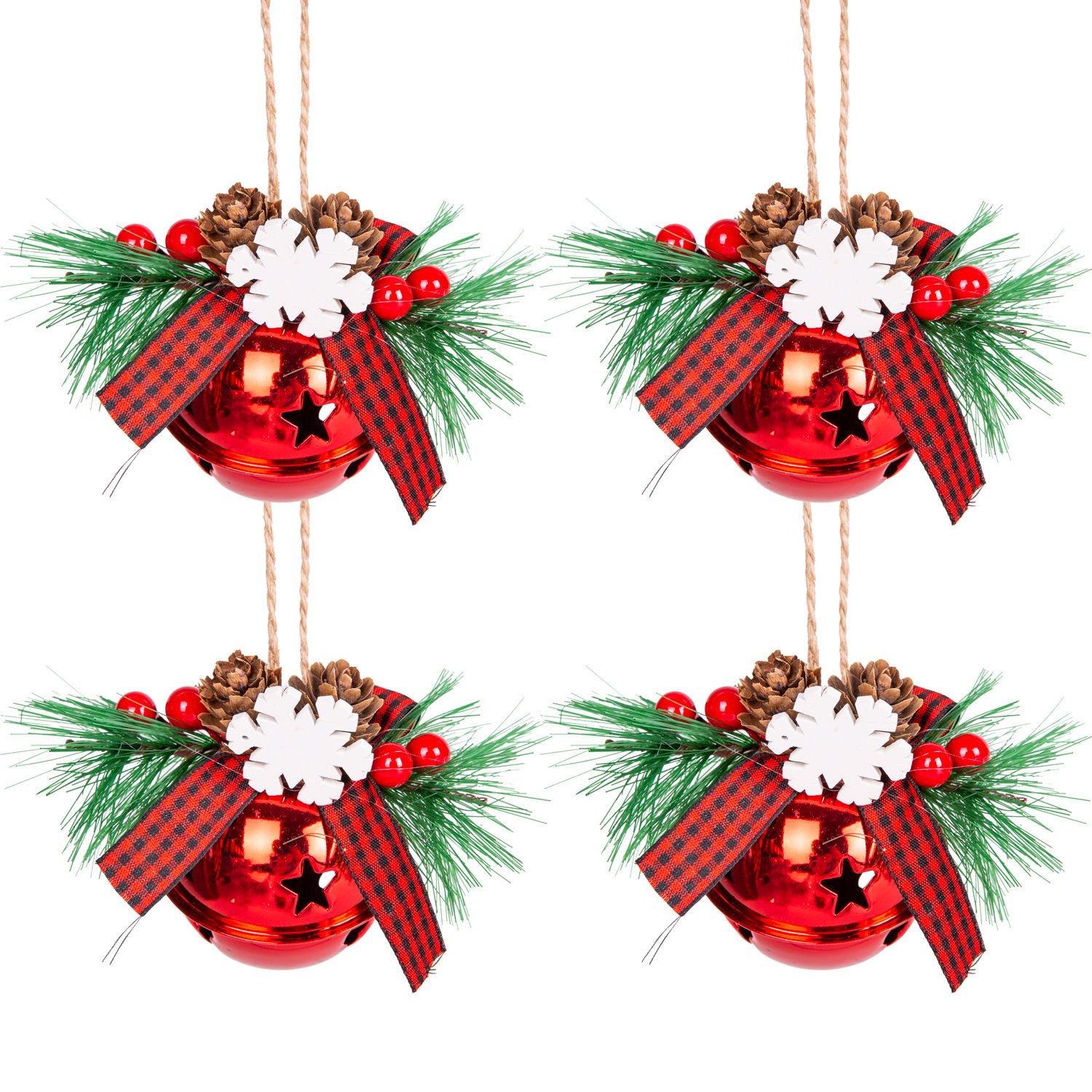 Yılbaşı Ağaç Süsü 4'lü Set: Çıngıraklı Kırmızı Toplarla Yılbaşı Coşkusunu Hissedin