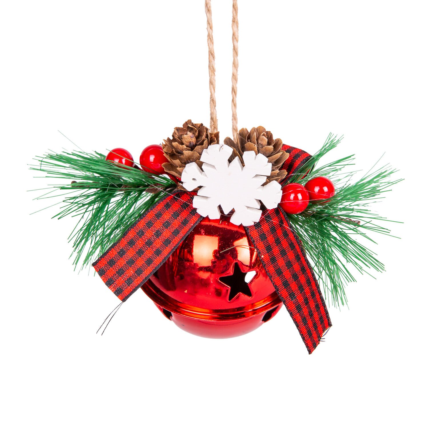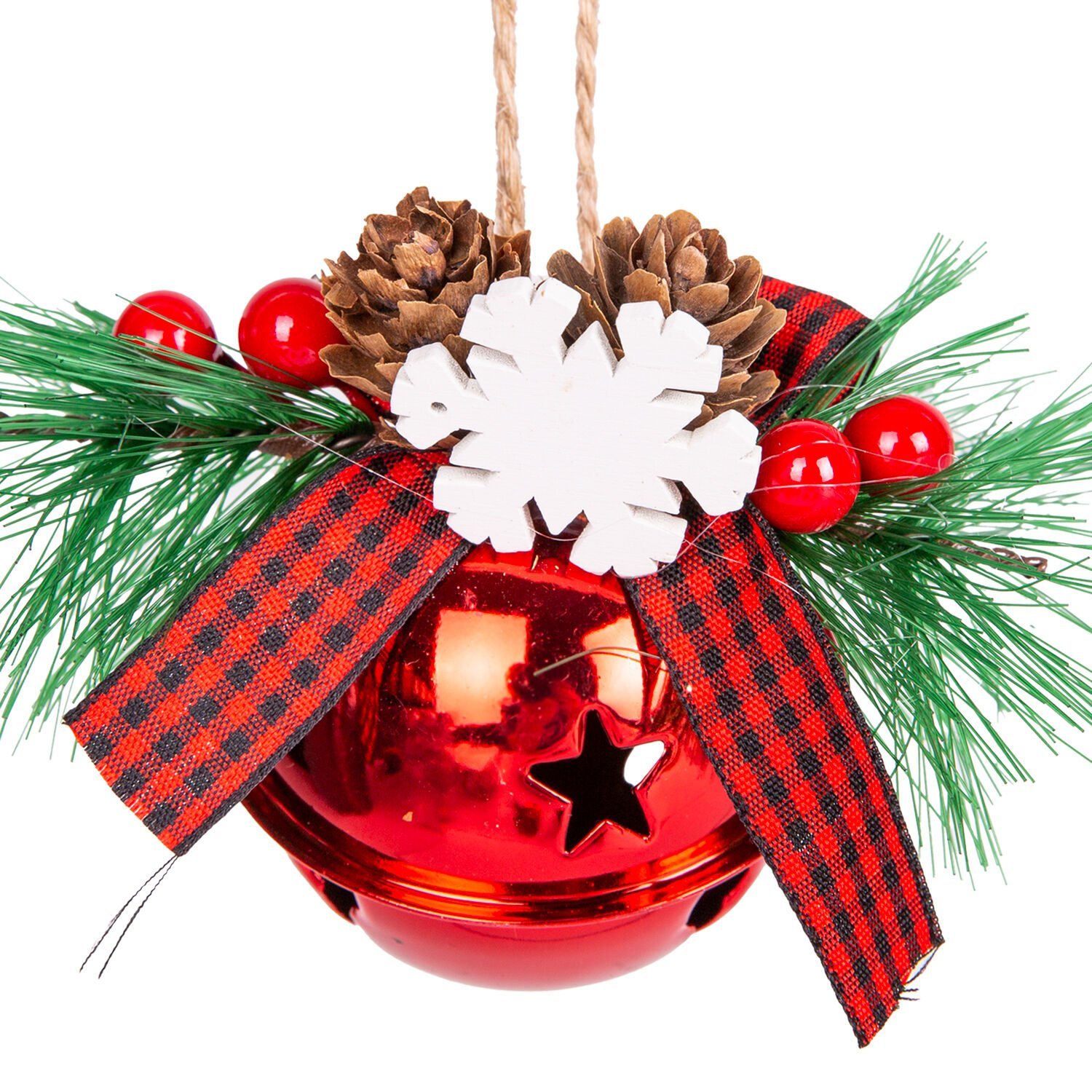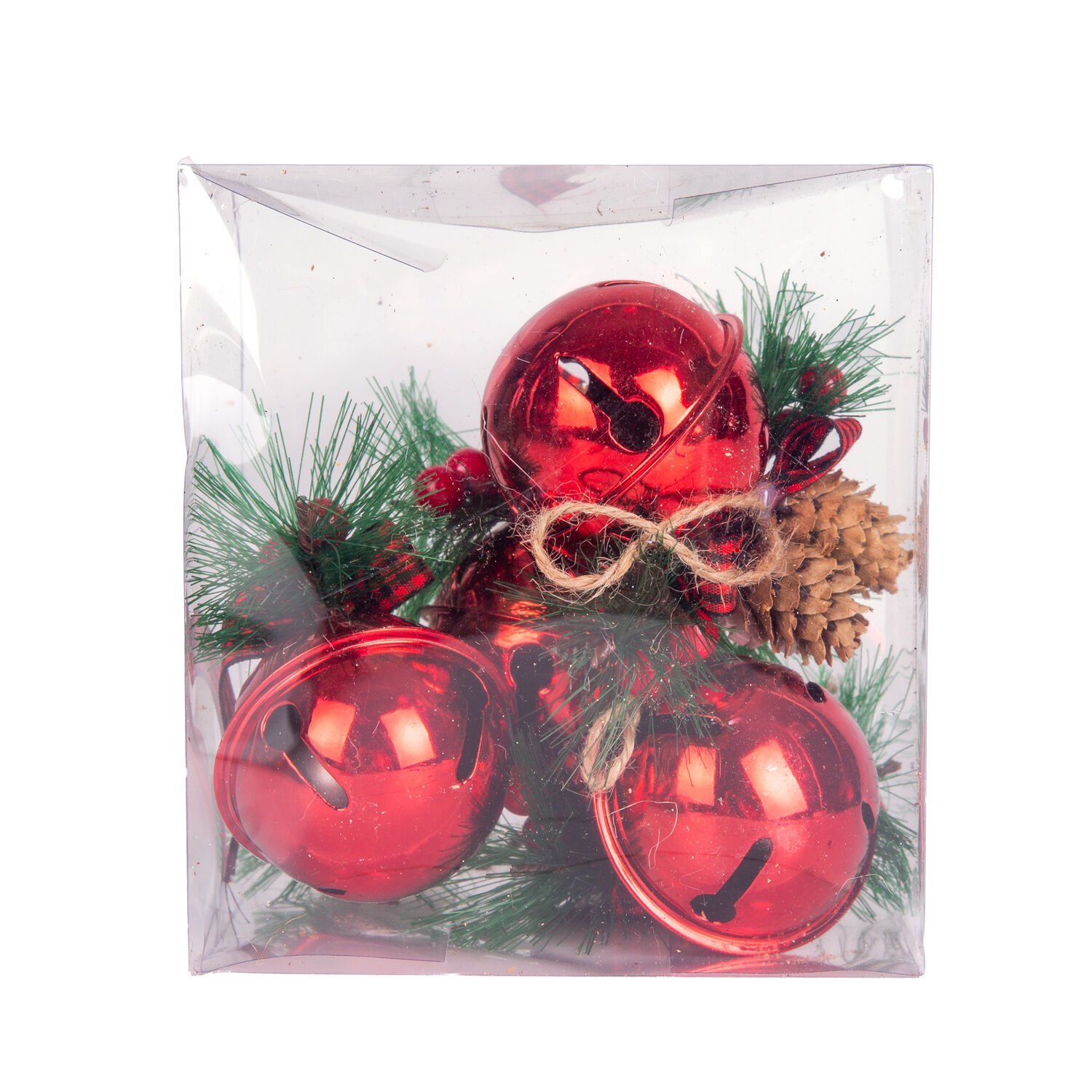 Yılbaşı Süsü, Yılbaşı Topu, Çıngıraklı, Kırmızı - 4'lü Set, 6x7 cm