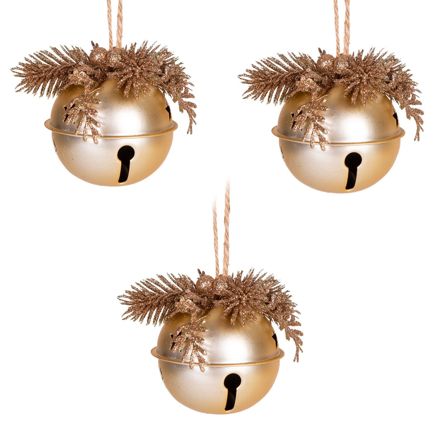 Yılbaşı Süsü, Yılbaşı Topu, Çıngıraklı, Simli, Berry Süslü, Gold - 3'lü Set, 8 cm