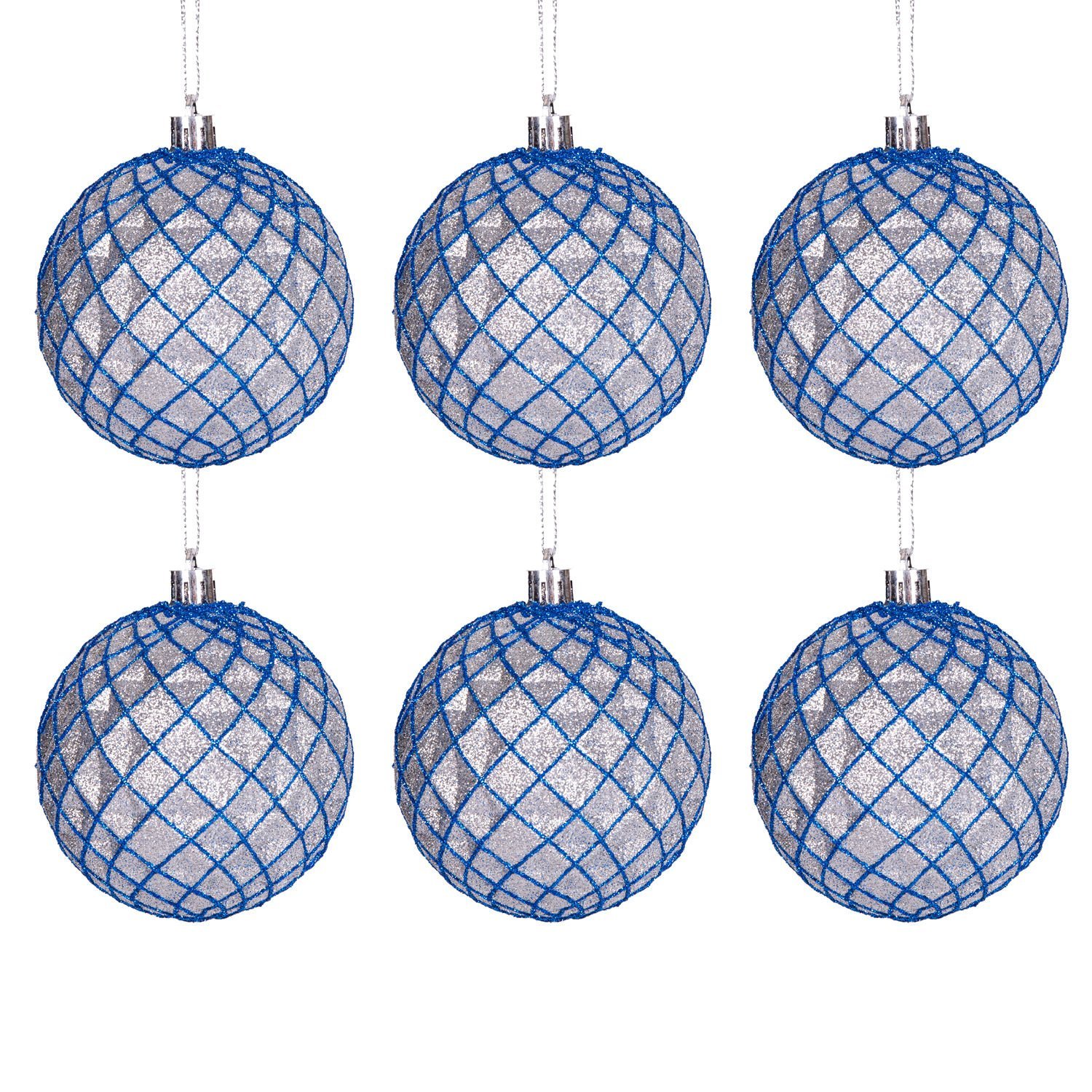 - **Paket İçeriği:** 6 Adet 8 cm Gümüş-Lacivert Simli Yılbaşı Topu