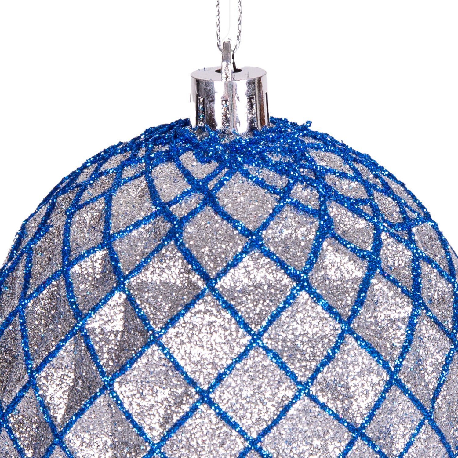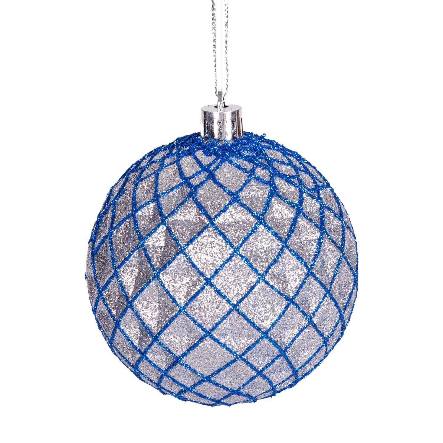 Yılbaşı Süsü, Yılbaşı Topu, Simli, Gümüş-Lacivert - 6'lı Paket, 8 cm
