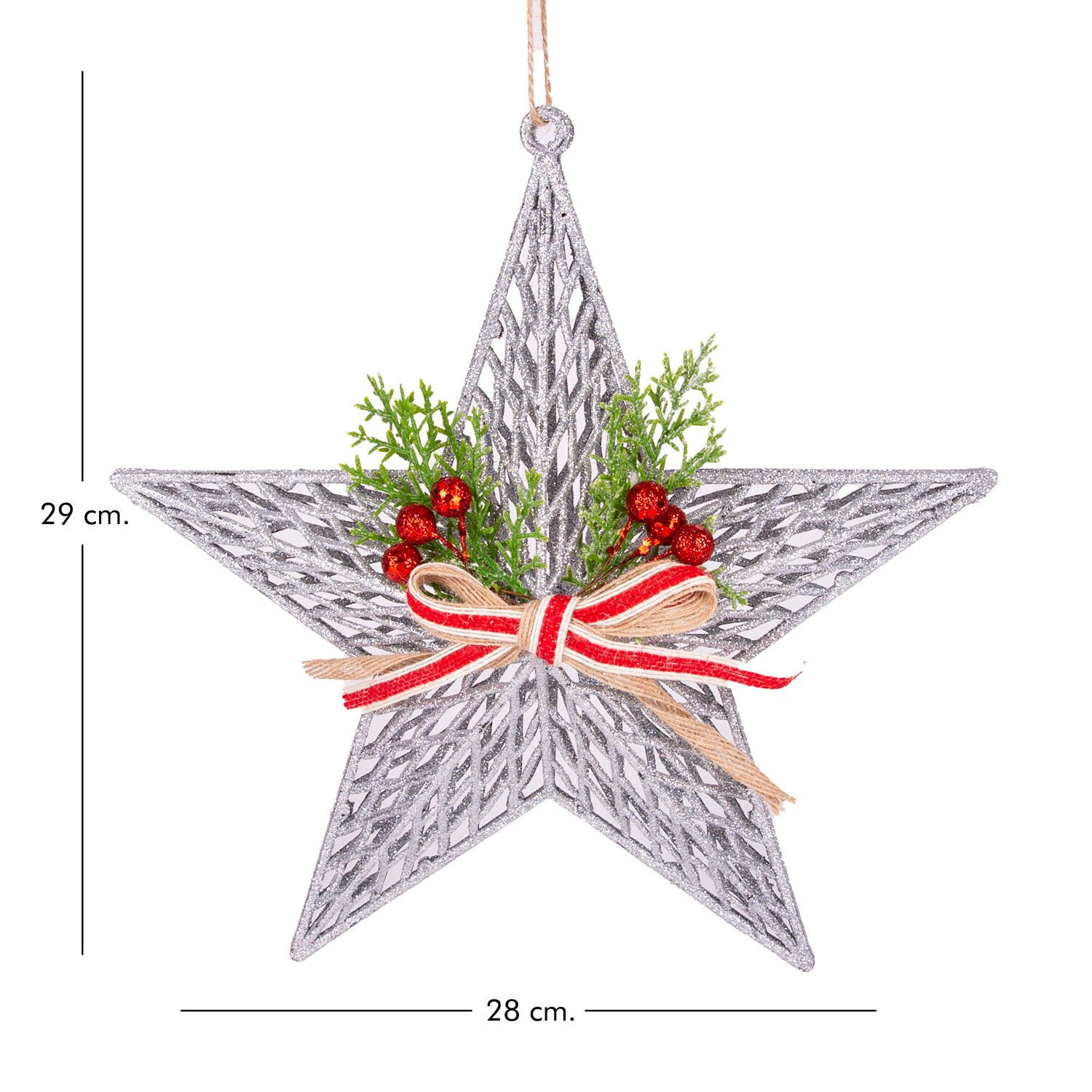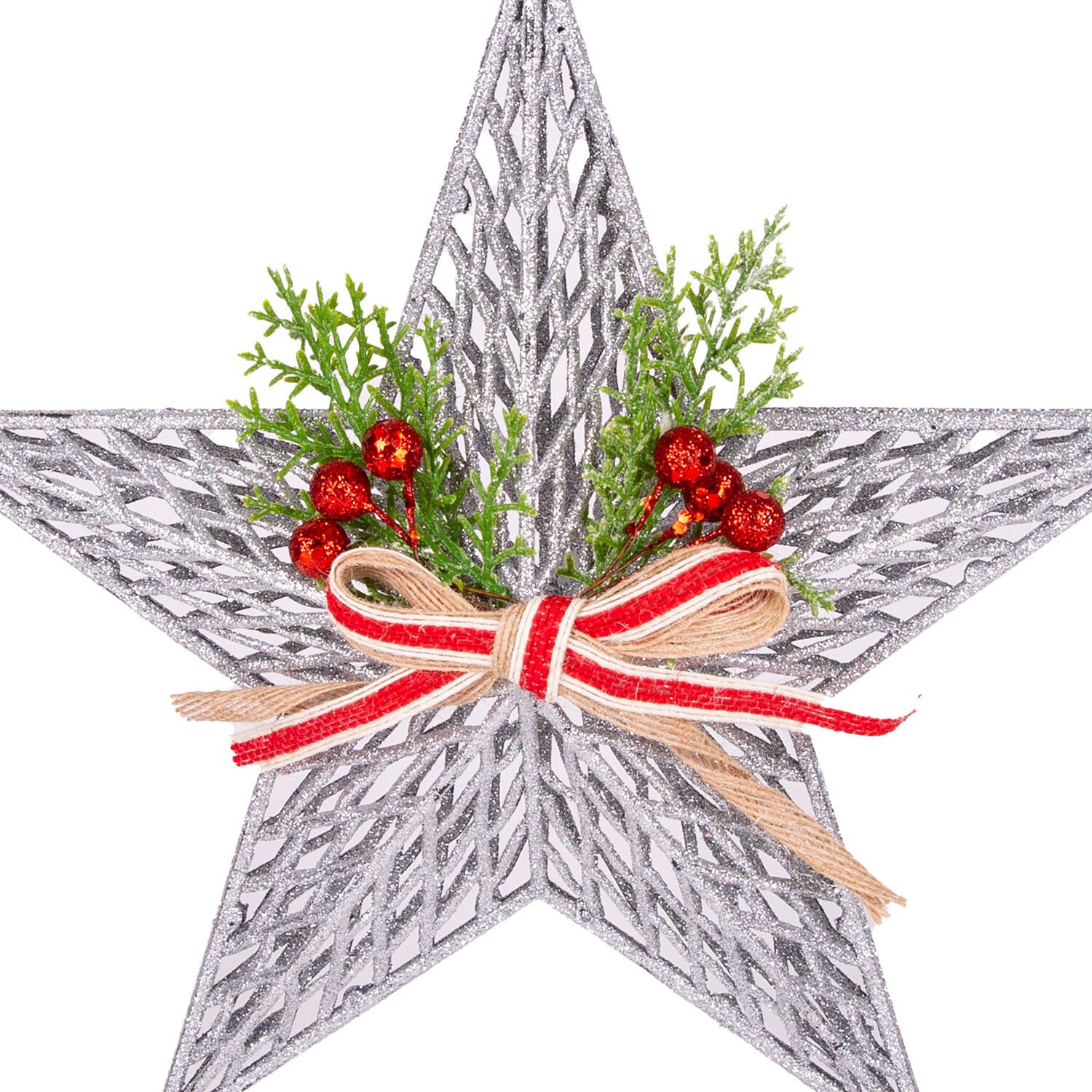 Yılbaşı Süsü, Yıldız, Yılbaşı Dekorlu, Fiyonklu, Berryli, Gümüş - 28x29 cm