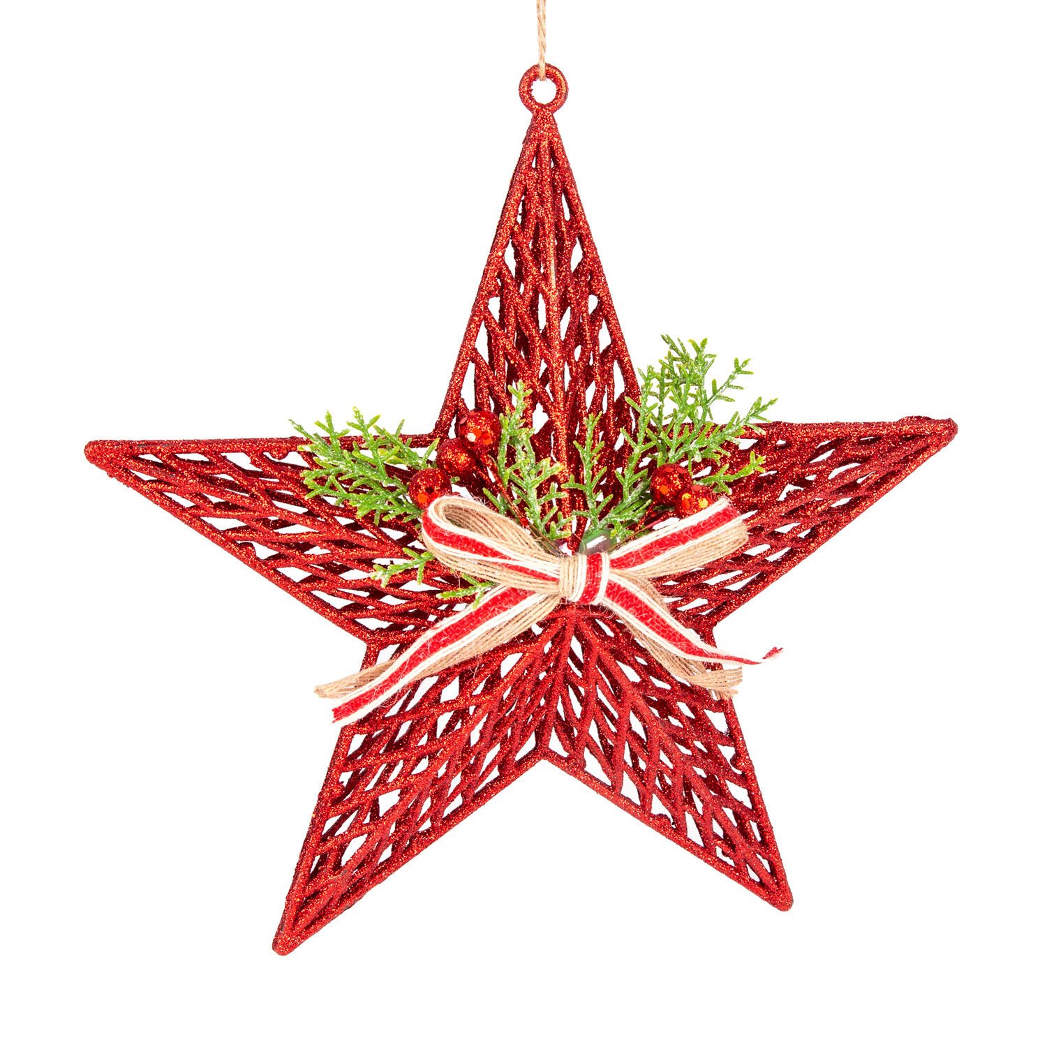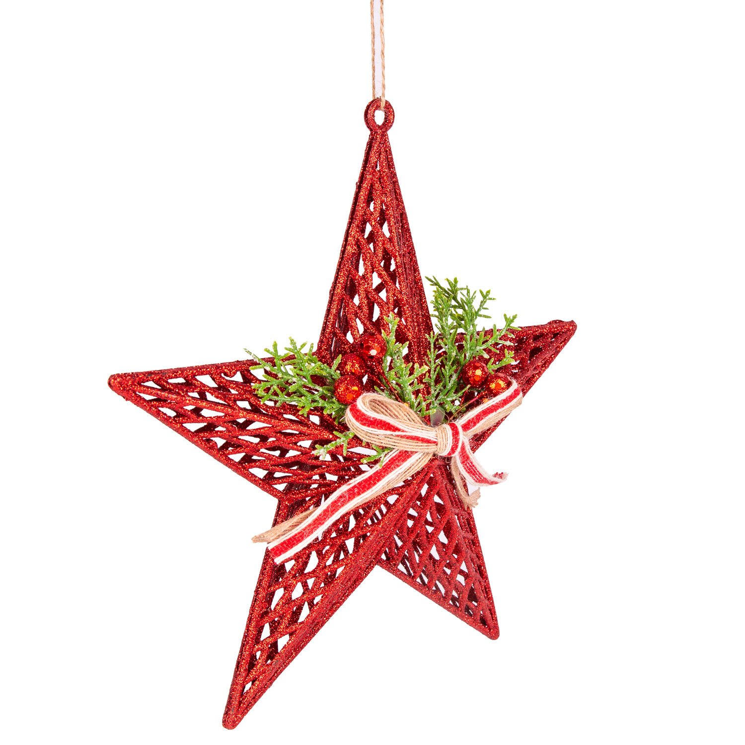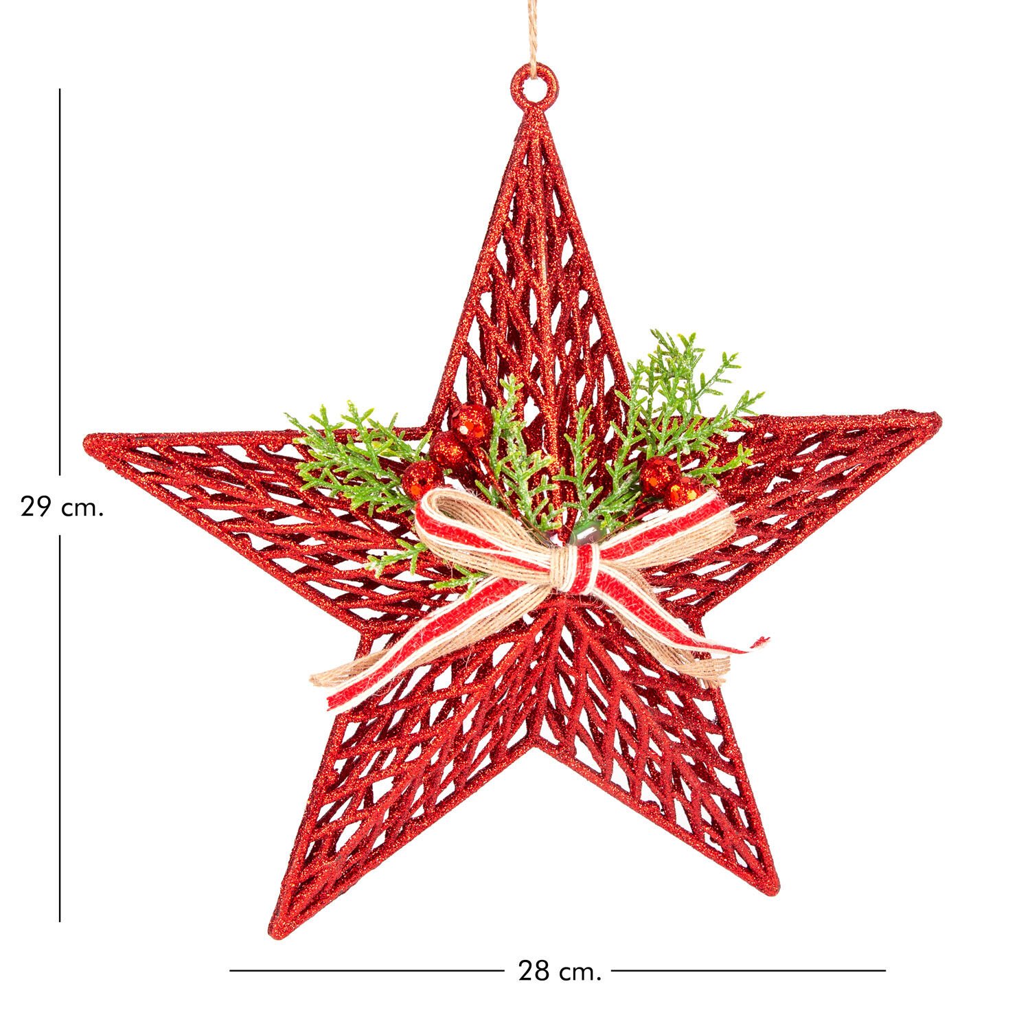 Yılbaşı Süsü, Yıldız, Yılbaşı Dekorlu, Fiyonklu, Berryli, Kırmızı - 28x29 cm
