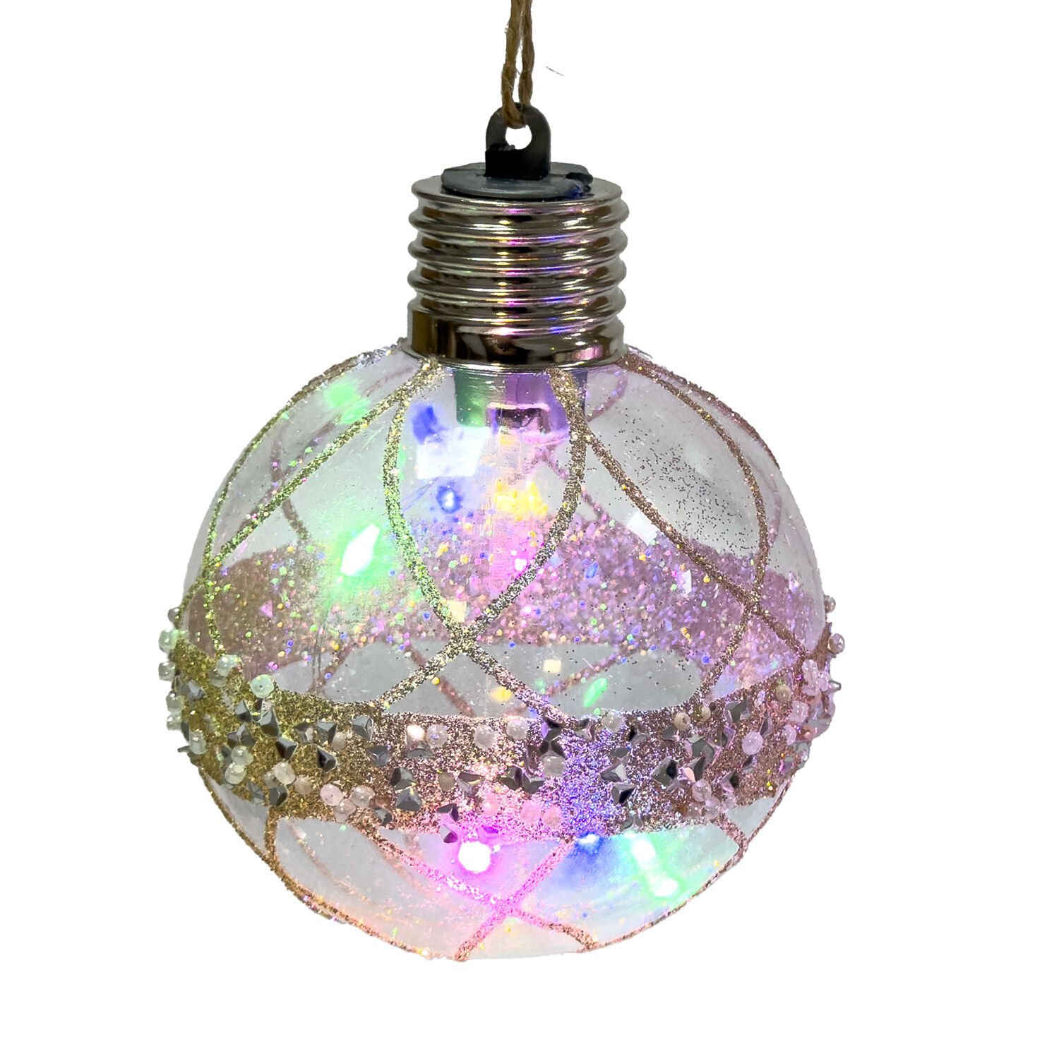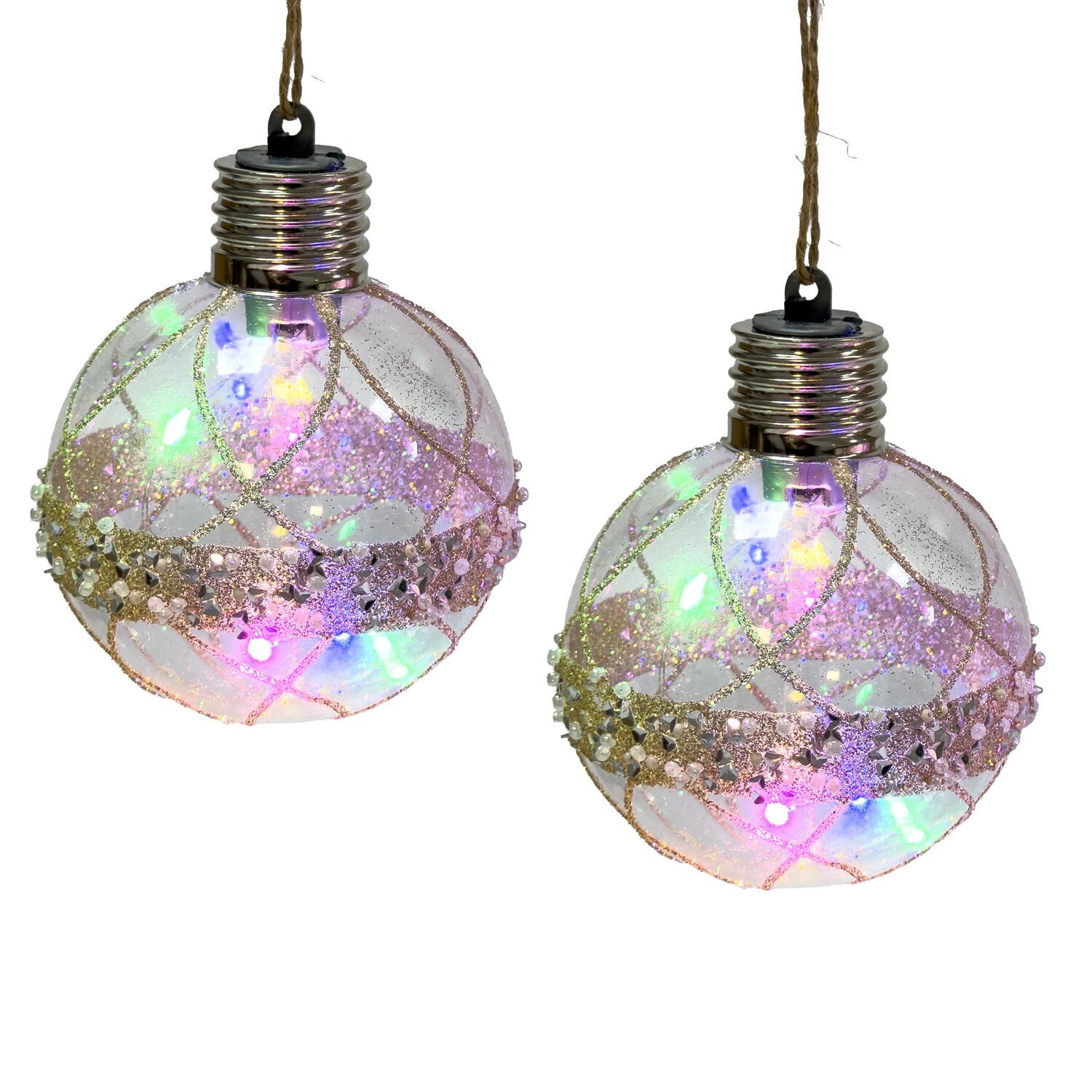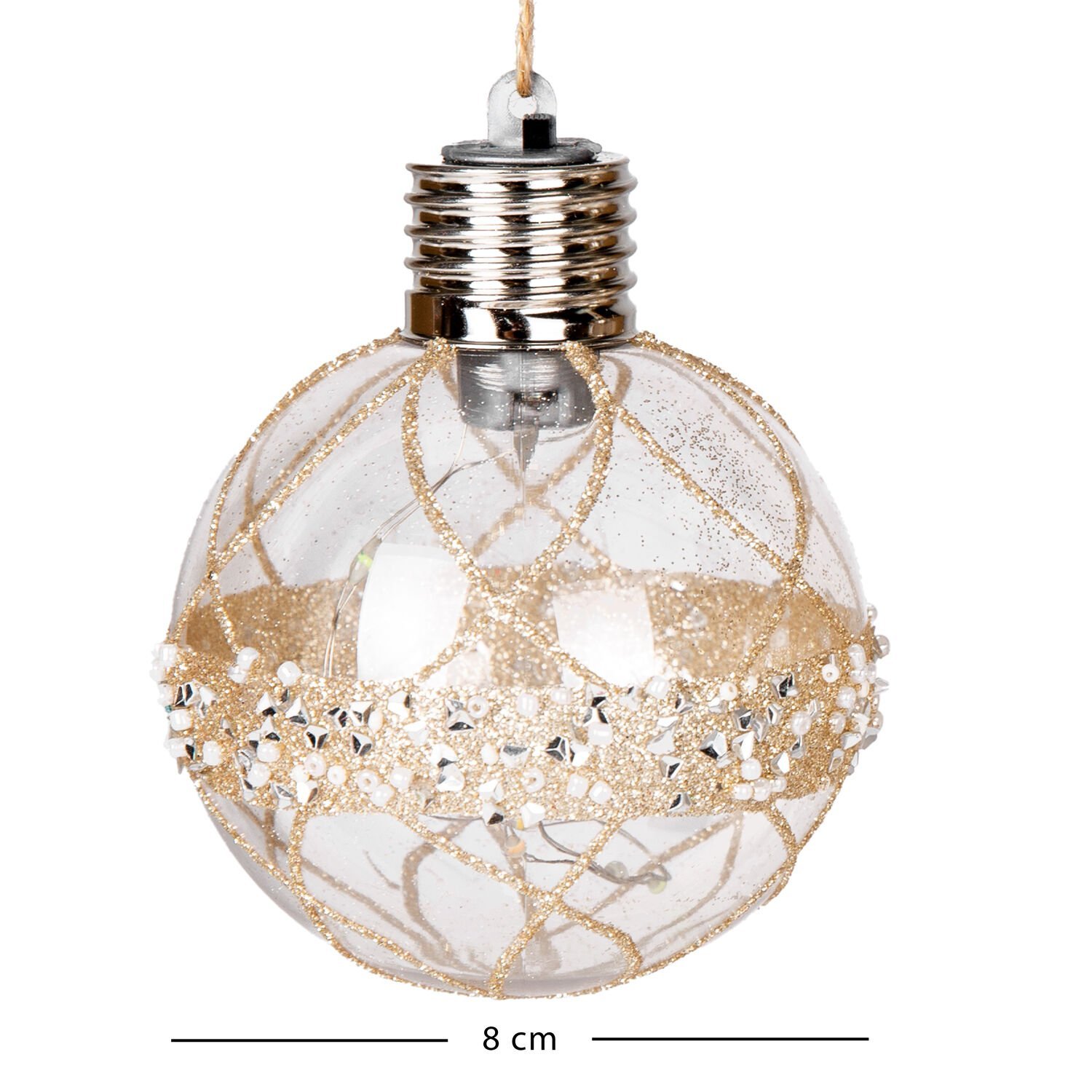 Yılbaşı Topu, Gold - Işıklı, 2'li Paket, 8 cm