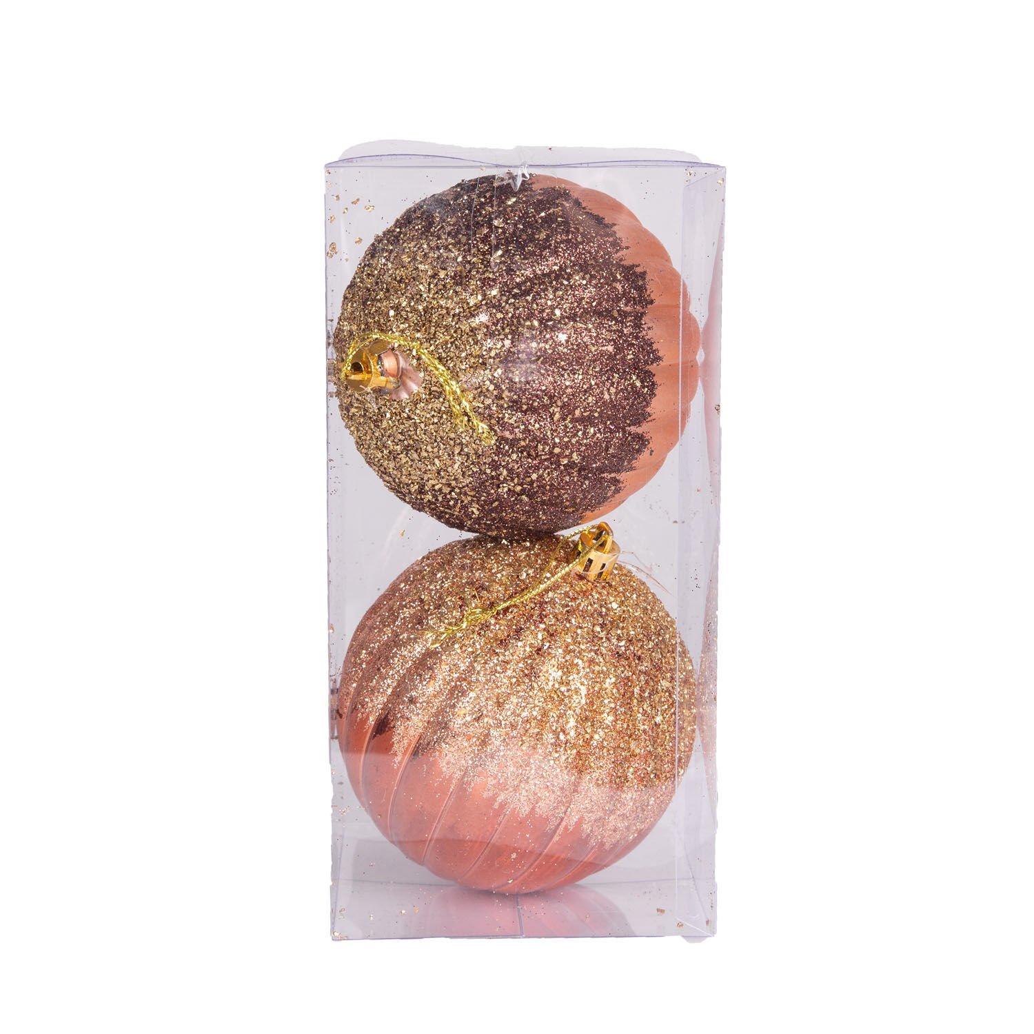 Yılbaşı Topu, Gold Simli, Gold-Bronz - 2'li Paket, 10 cm