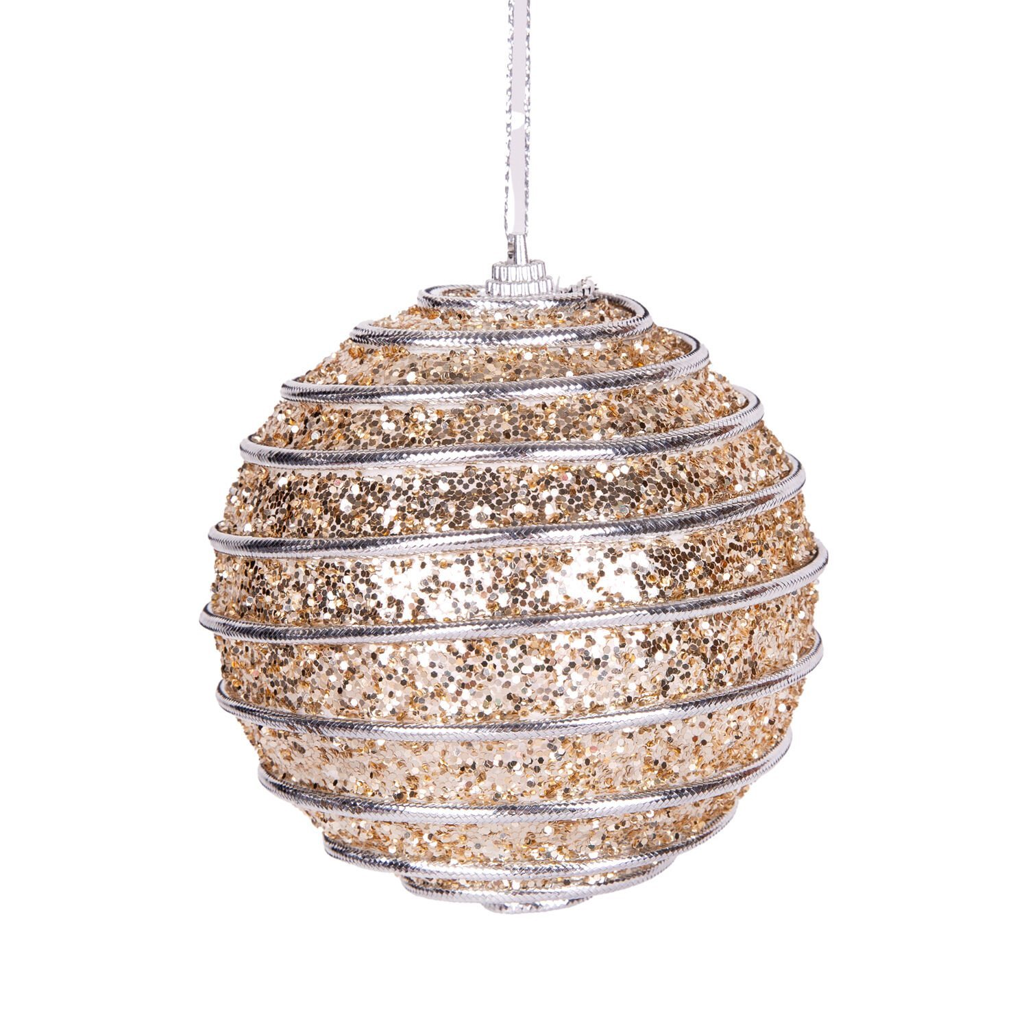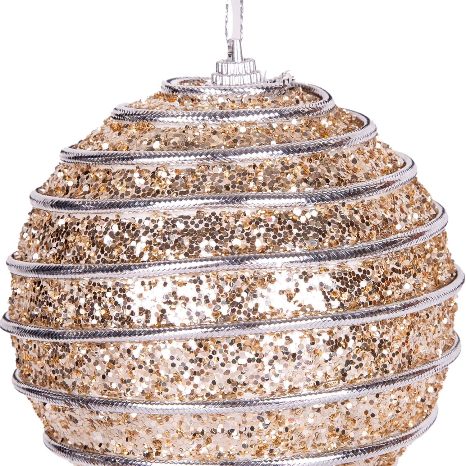 Yılbaşı Topu, Pullu, Gümüş Şerit İp Desenli, Şampanya - 2'li Paket, 9 cm