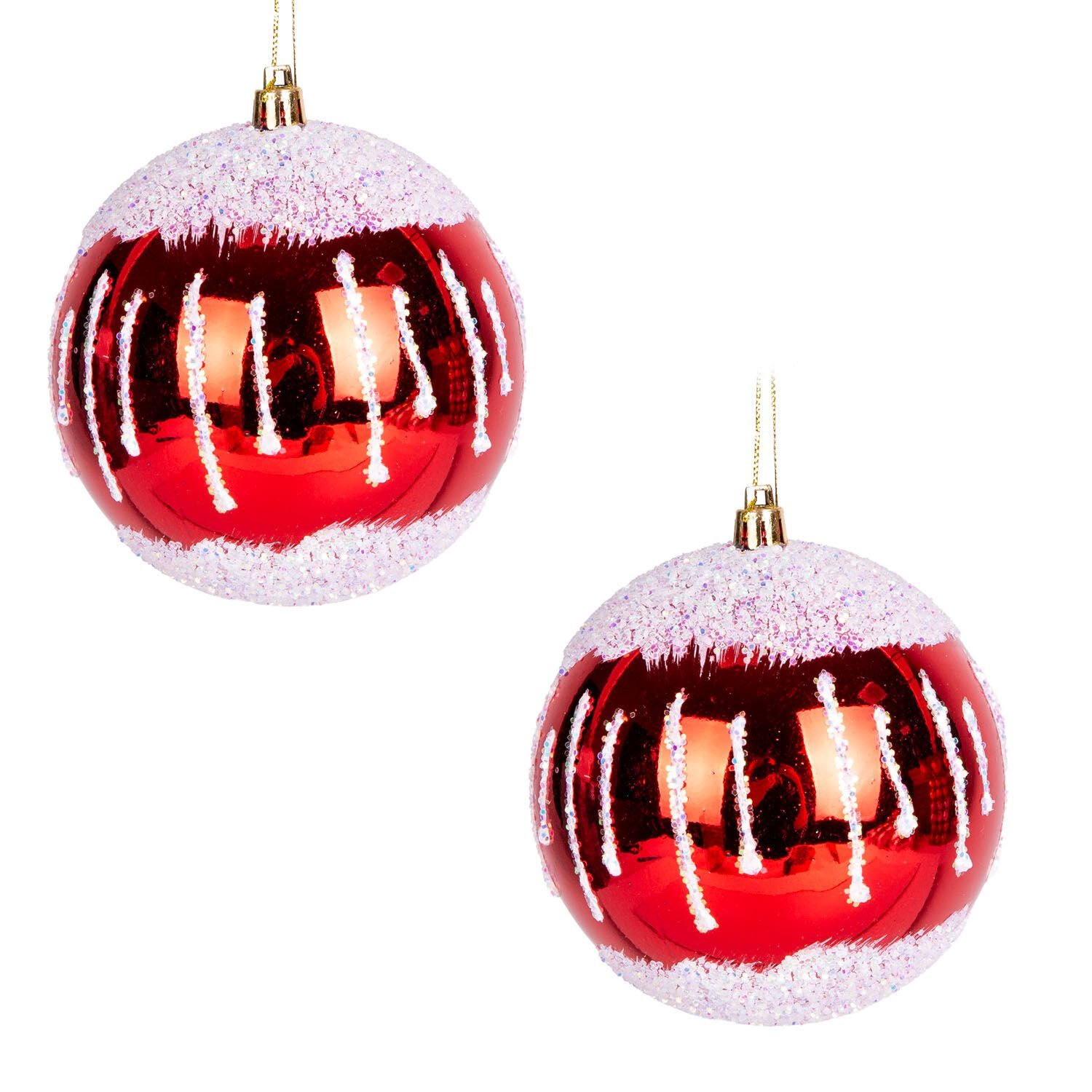 Yılbaşı Topu, Renkli Simli, Kar Efektli, Kırmızı-Beyaz - 2'li Paket, 10 cm