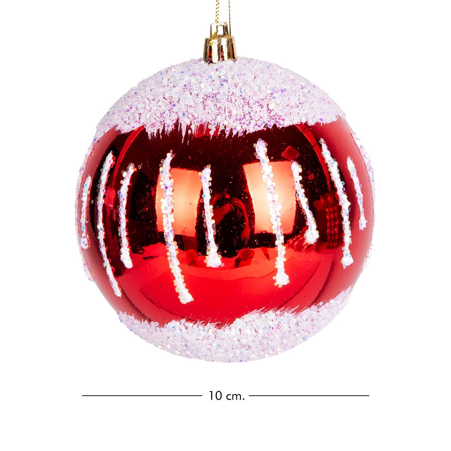 10 cm çap, standart süslere göre daha büyüktür. Özellikle büyük yılbaşı ağaçlarında etkili ve güçlü bir görsel vurgu yaratmak için idealdir.