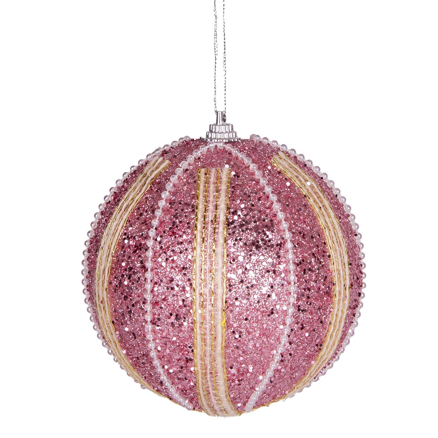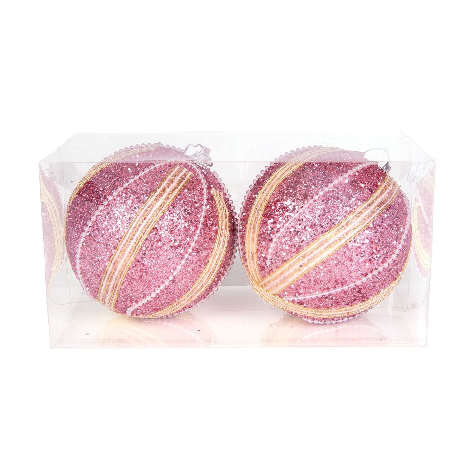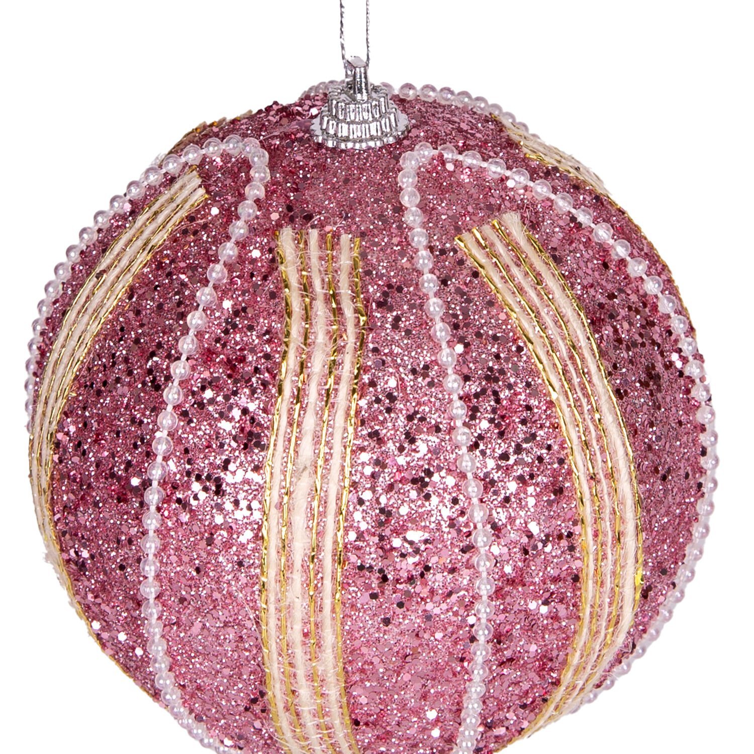 Yılbaşı Topu, Şerit İnci Boncuk Figürlü, Pembe - 2'li Paket, 9 cm