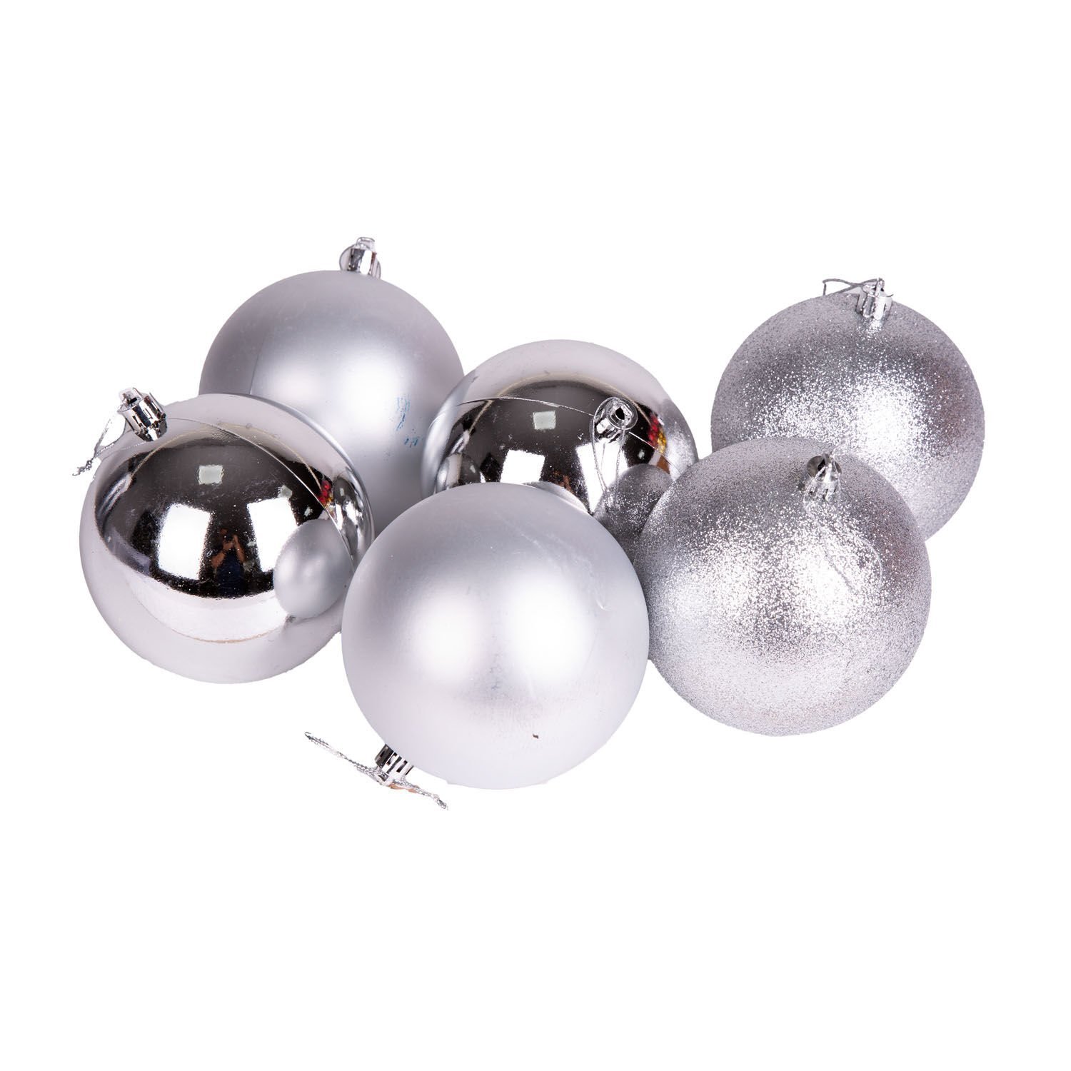 - Paket İçeriği: 6 Adet 10 cm Gümüş Yılbaşı Topu (Farklı dokularda karışık)