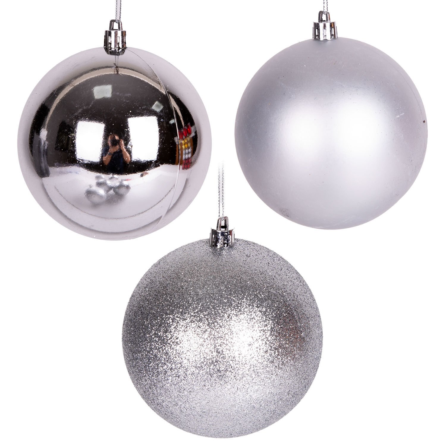 Yılbaşı Topu Seti (Gümüş, Simli, Mat ve Parlak, 10 cm): Ağacınızda Gümüşün Büyüleyici ve Sofistike Işıltısı