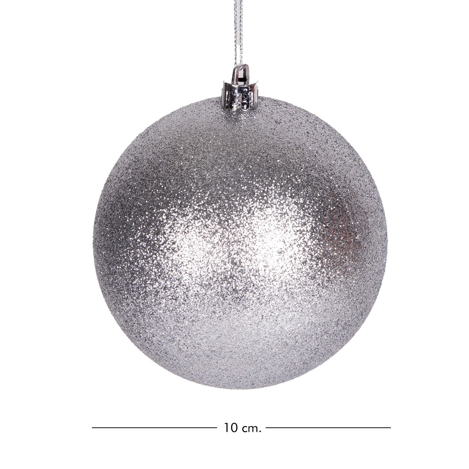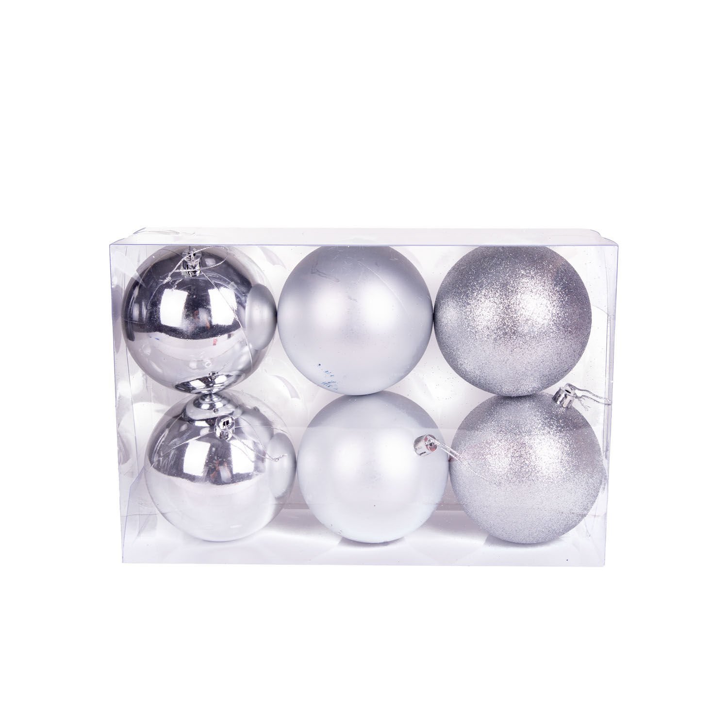 Yılbaşı Topu, Simli Mat Parlak, Gümüş - 6'lı Set, 10 cm