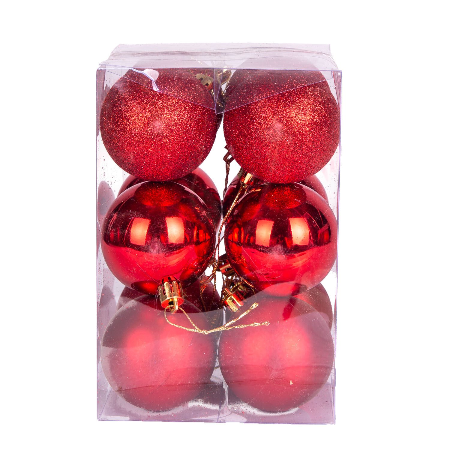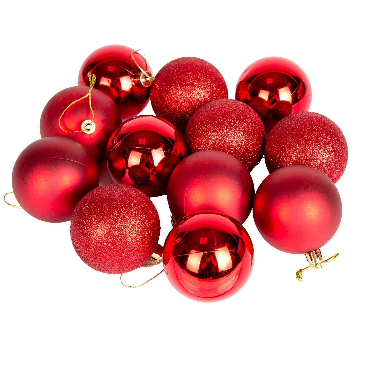 - Paket İçeriği: 12 adet Kırmızı Yılbaşı Topu (Genellikle 4 adet mat, 4 adet parlak, 4 adet simli karışık set).