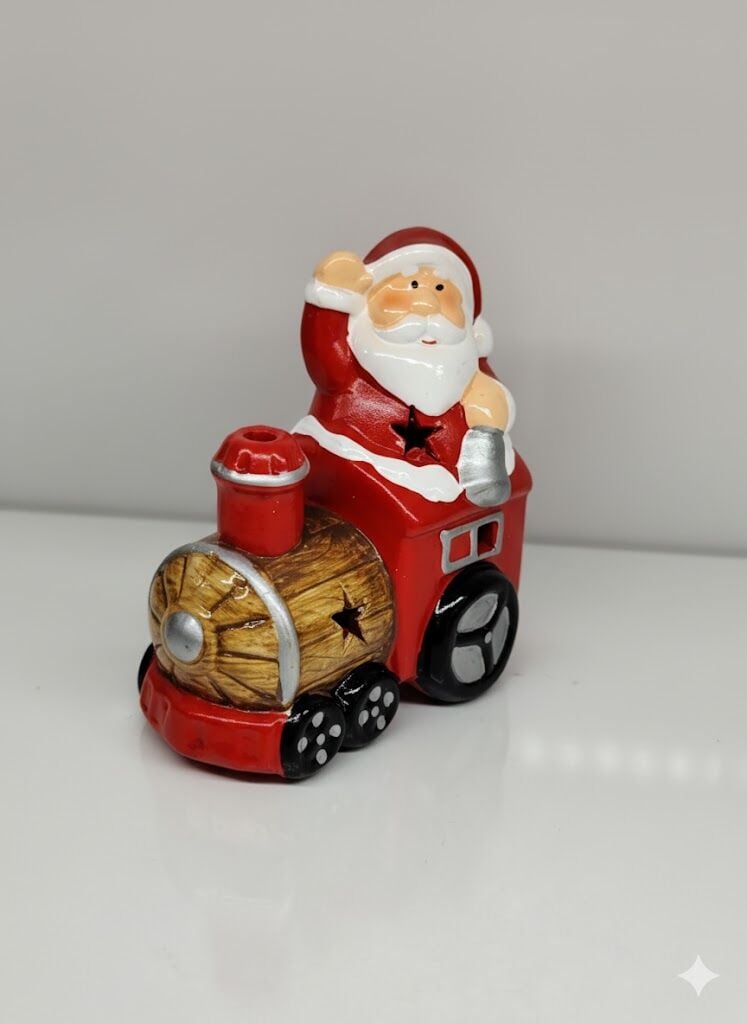 Yılbaşı Treni, Noel Baba Figürlü, Kırmızı - Işıklı, Seramik